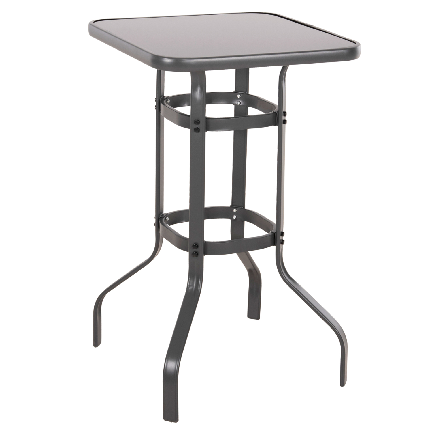 Το τραπέζι μπαρ εξωτερικού χώρου FB96066.01 σε ΓΚΡΙ χρώμα είναι τετράγωνο με στρογγυλεμένες γωνίες και καμπυλωτή διάταξη στα πόδια. Πρόκειται για πολύ σταθερό κι ανθεκτικό τραπέζι με επιφάνεια από γυαλί ασφαλείας και δύο «δαχτυλίδια» δεσίματος των ποδιών, που θα ικανοποιήσει και τους πιο απαιτητικούς!