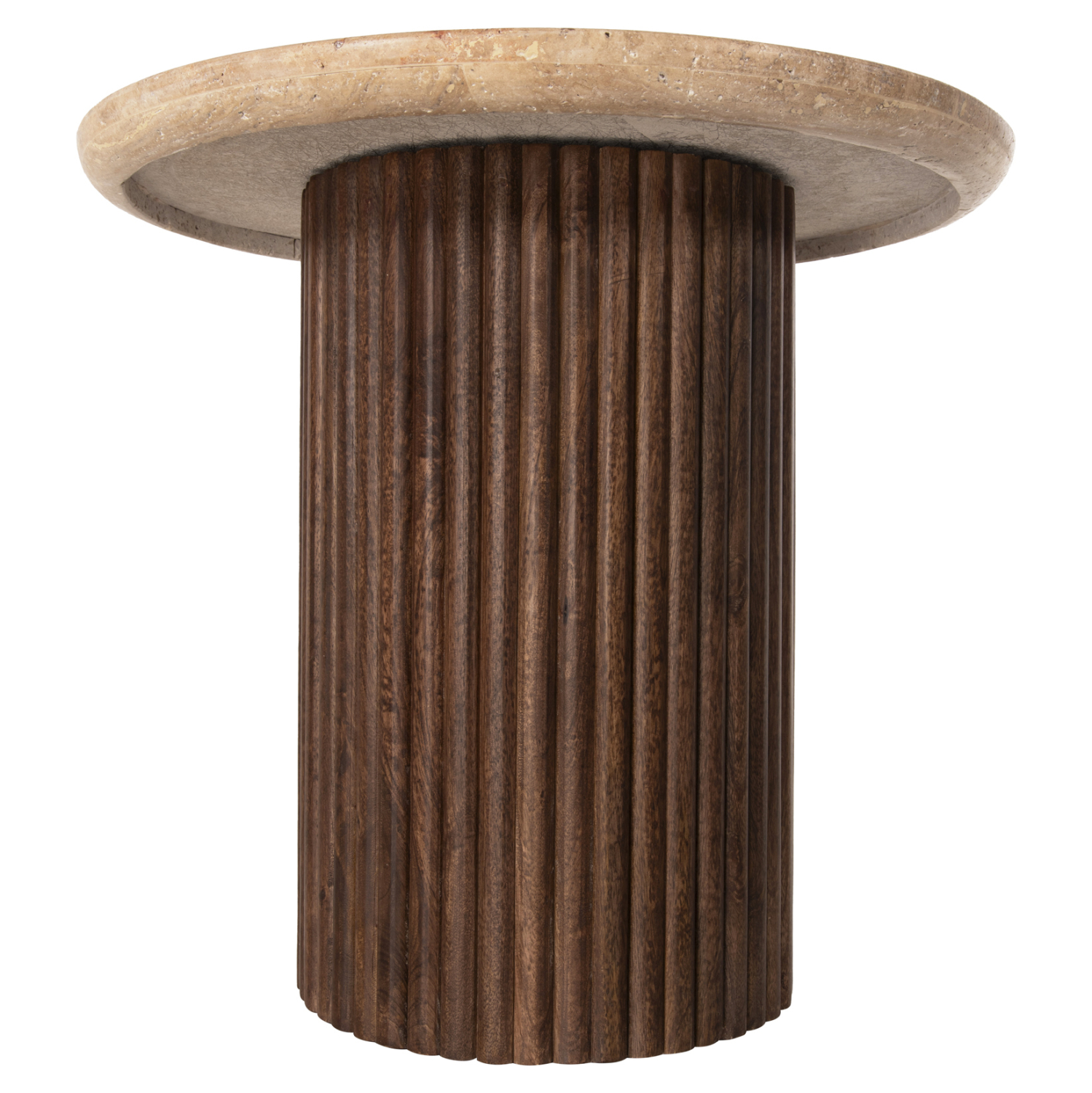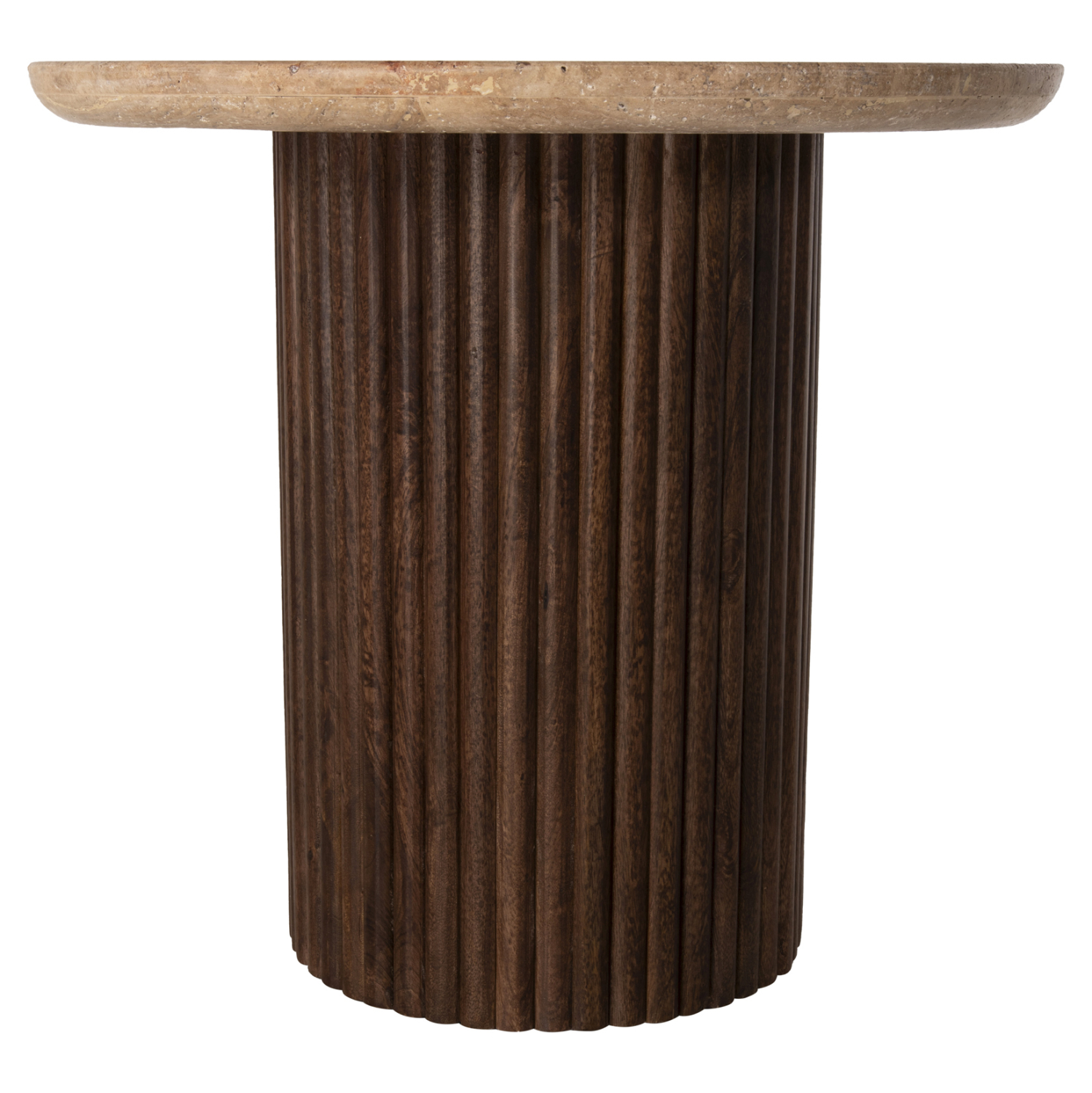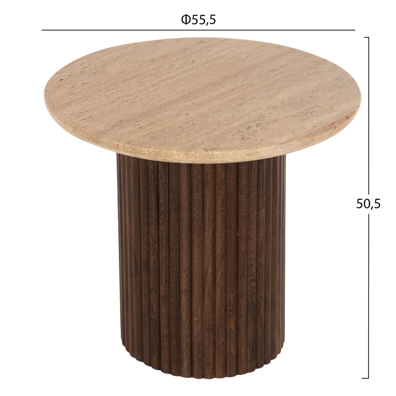 Το FB99714 είναι ένα στρογγυλό τραπέζι για το σαλόνι σε ΚΑΦΕ χρώμα με επιφάνεια από τραβερτίνα στο ΛΕΥΚΟ της χρώμα. Πρόκειται για ένα πολυτελέστατο όσο και πρακτικό έπιπλο για το σαλόνι σας που δεν θα περάσει απαρατήρητο!