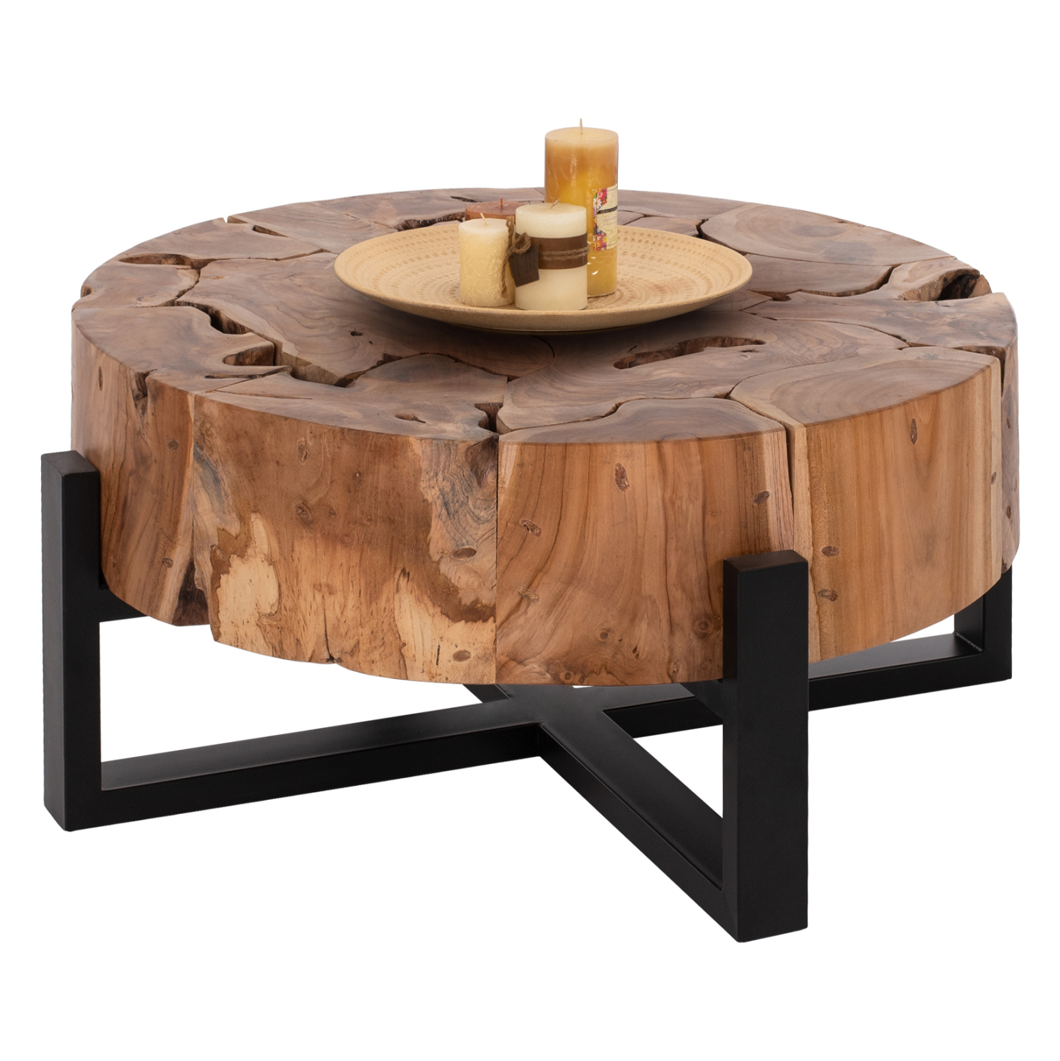 Το FB99352 είναι ένα χαμηλό στρογγυλό τραπέζι για το σαλόνι, με ικανοποιητικές διαστάσεις σε φυσικό χρώμα ξύλου. Το τραπέζι στηρίζεται σε μια ΜΑΥΡΗ μεταλλική βάση σε σχήμα σταυρού. Αυτό το τραπέζι θα αναβαθμίσει αισθητικά το σαλόνι σας ενώ μπορεί να ταιριάξει με πολλά διαφορετικά στυλ και χρώματα στον τριγύρω χώρο. Οι υπάρχουσες ρωγμές ή αυτές που ενδέχεται να δημιουργηθούν με την πάροδο του χρόνου οφείλονται στην συστολή-διαστολή του ζωντανού οργανισμού που λέγεται μασίφ ξύλο, και δεν αποτελούν κατασκευαστικό ελάττωμα, δίνοντας πρωτοτυπία και μοναδικό design στο χώρο σας. Αυτά δεν αποτελούν ελάττωμα του προϊόντος.