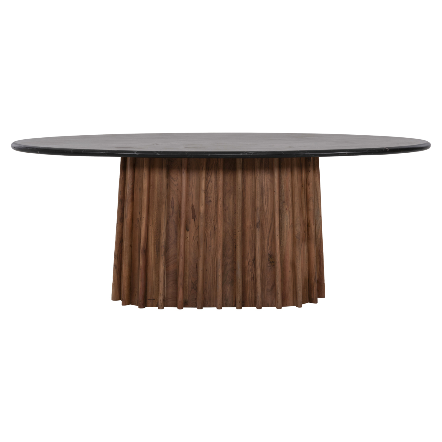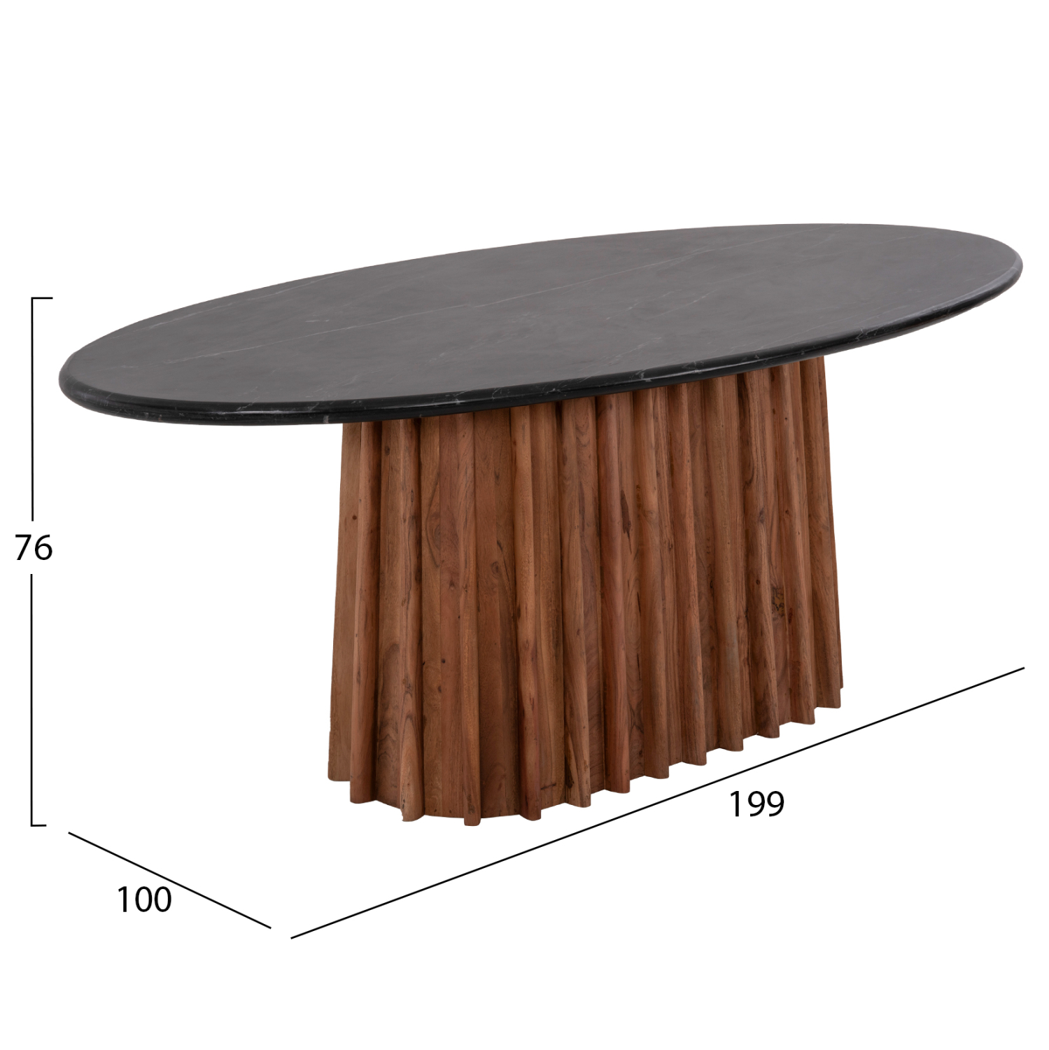 Το FB99689 είναι ένα πανέμορφο οβάλ τραπέζι τραπεζαρίας σε μεγάλη διάσταση με επιφάνεια από ΜΑΥΡΟ ΜΑΡΜΑΡΟ. Αυτή η επιφάνεια στηρίζεται σε μια κεντρική κολώνα με κωνικό οβάλ σχήμα από ποιοτικό μασίφ ξύλο αριστοτεχνικά λαξευμένο. Αυτό το εντυπωσιακό τραπέζι θα αναβαθμίσει αισθητικά την τραπεζαρία σας ενώ μπορεί να ταιριάξει με πολλά διαφορετικά στυλ και χρώματα στον τριγύρω χώρο, όπως και με διαφορετικά στυλ καρέκλας.