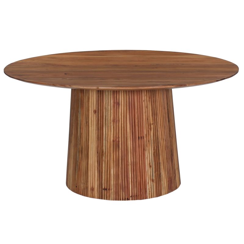 Το FB99685 είναι ένα στρογγυλό τραπέζι τραπεζαρίας σε ικανοποιητική διάσταση σε φυσικό χρώμα ξύλου. Το τραπέζι στηρίζεται σε μια κεντρική κολώνα με πολλές δοκούς σε κωνική διάταξη. Αυτό το τραπέζι θα αναβαθμίσει αισθητικά την τραπεζαρία σας ενώ μπορεί να ταιριάξει με πολλά διαφορετικά στυλ και χρώματα στον τριγύρω χώρο, όπως και με διαφορετικά στυλ καρέκλας.