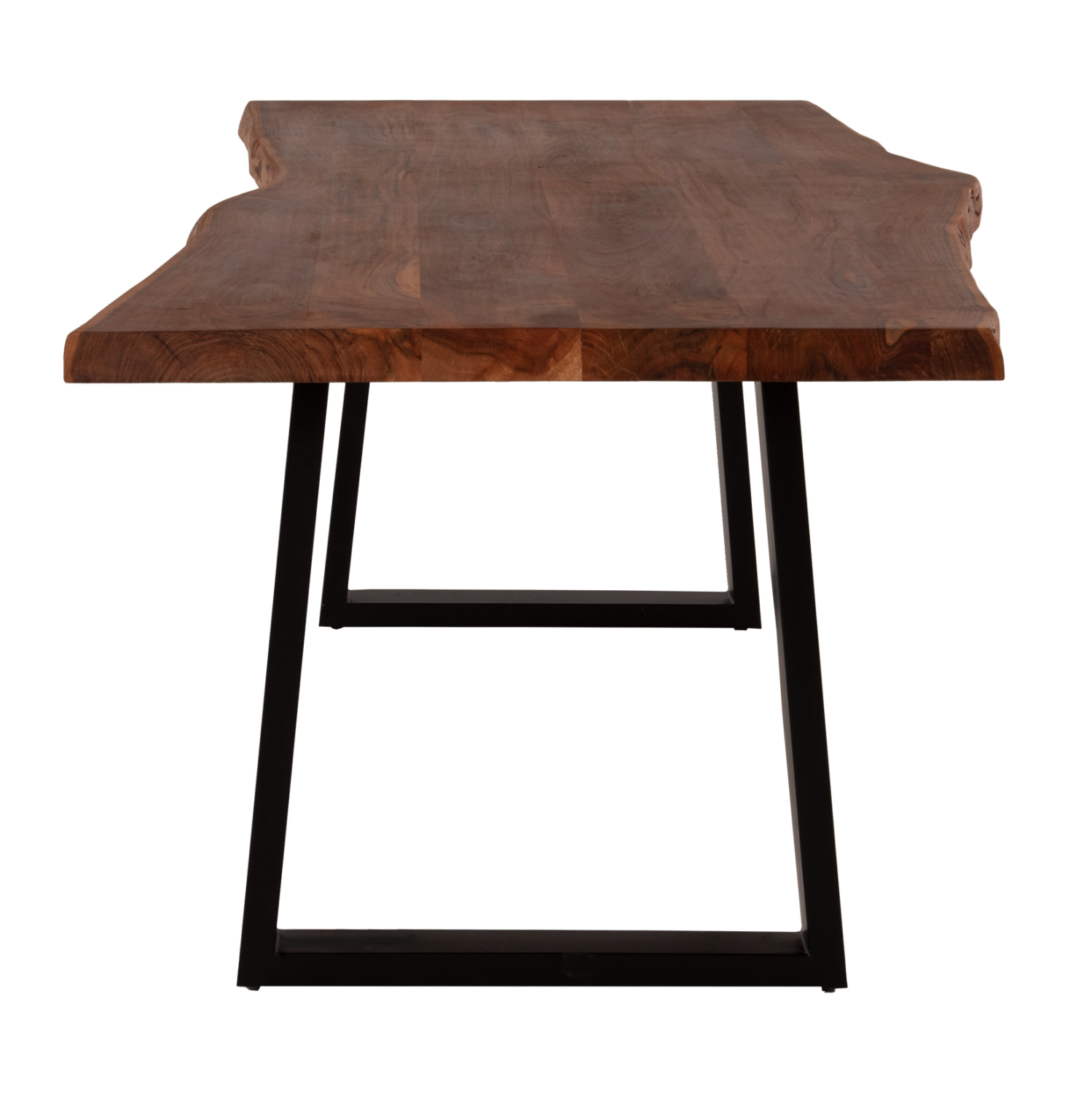 Ανακαλύψτε το μοναδικό μεγάλο χειροποίητο τραπέζι FB99620.11 με επιφάνεια από φυσικό μασίφ ξύλο ΑΚΑΚΙΑΣ σε ΦΥΣΙΚΟ χρώμα. To σχήμα της επιφάνειας με πάχος 4 εκατοστά είναι ΑΚΑΝΟΝΙΣΤΟ ορθογώνιο και στηρίζεται σε δύο μαύρες μεταλλικές βάσεις με τραπεζοειδές σχήμα. Το μοντέρνο design συναντά την φύση και δίνει μια διαχρονική και ζεστή αίσθηση στον χώρο σας.