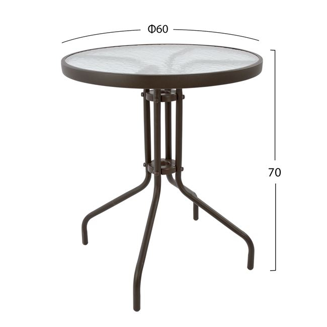 ΤΡΑΠΕΖΙ LIMA Φ60×70Υεκ. ΚΑΦΕ ΜΕΤΑΛΛΙΚΟ ΜΕ ΓΥΑΛΙΝΗ ΕΠΙΦΑΝΕΙΑ FB5079.02 Στατικό Γυαλί Καφέ