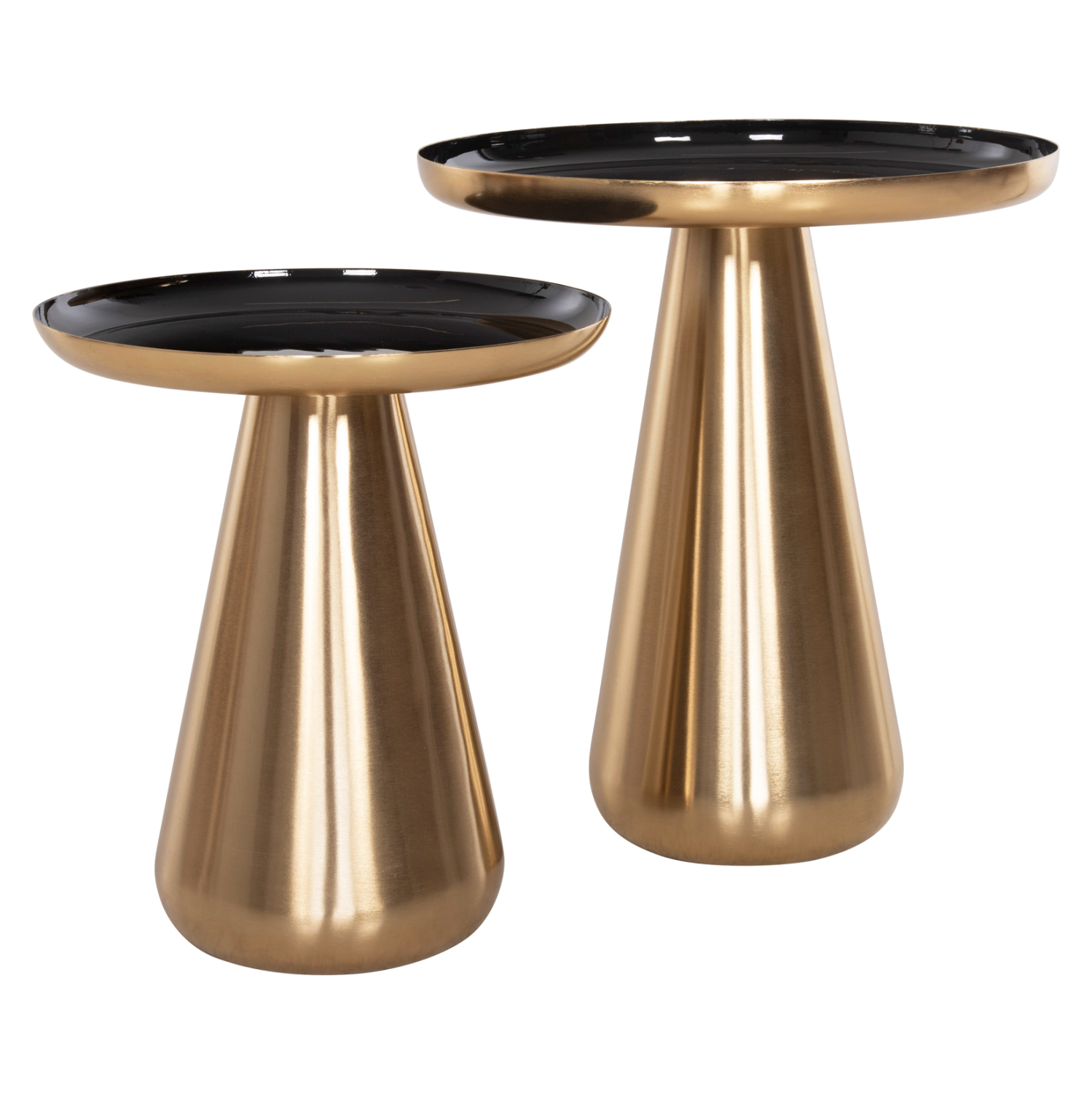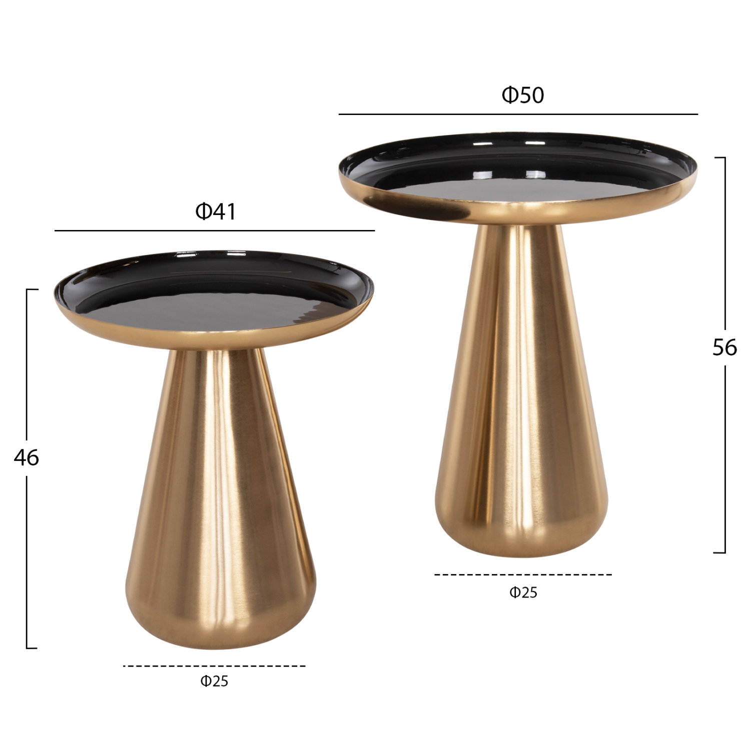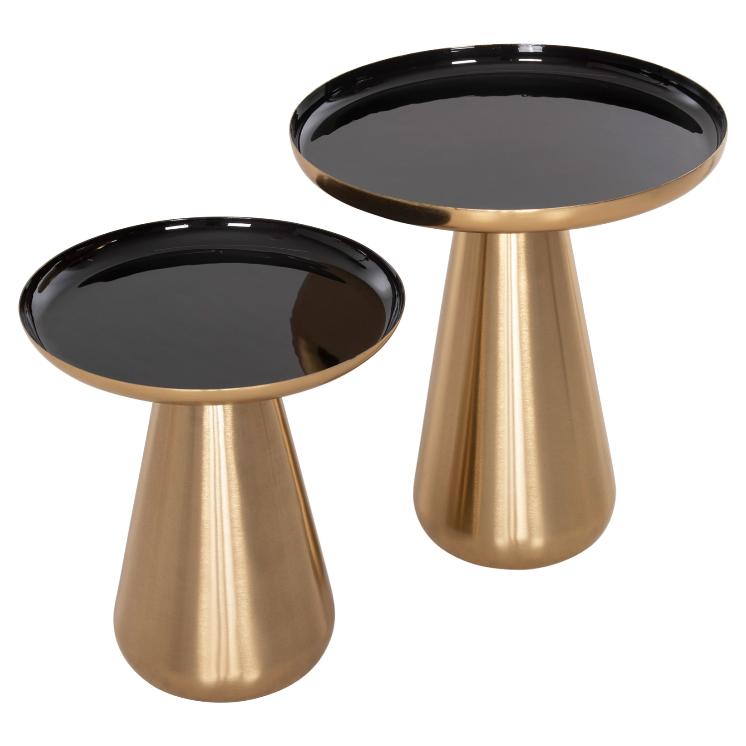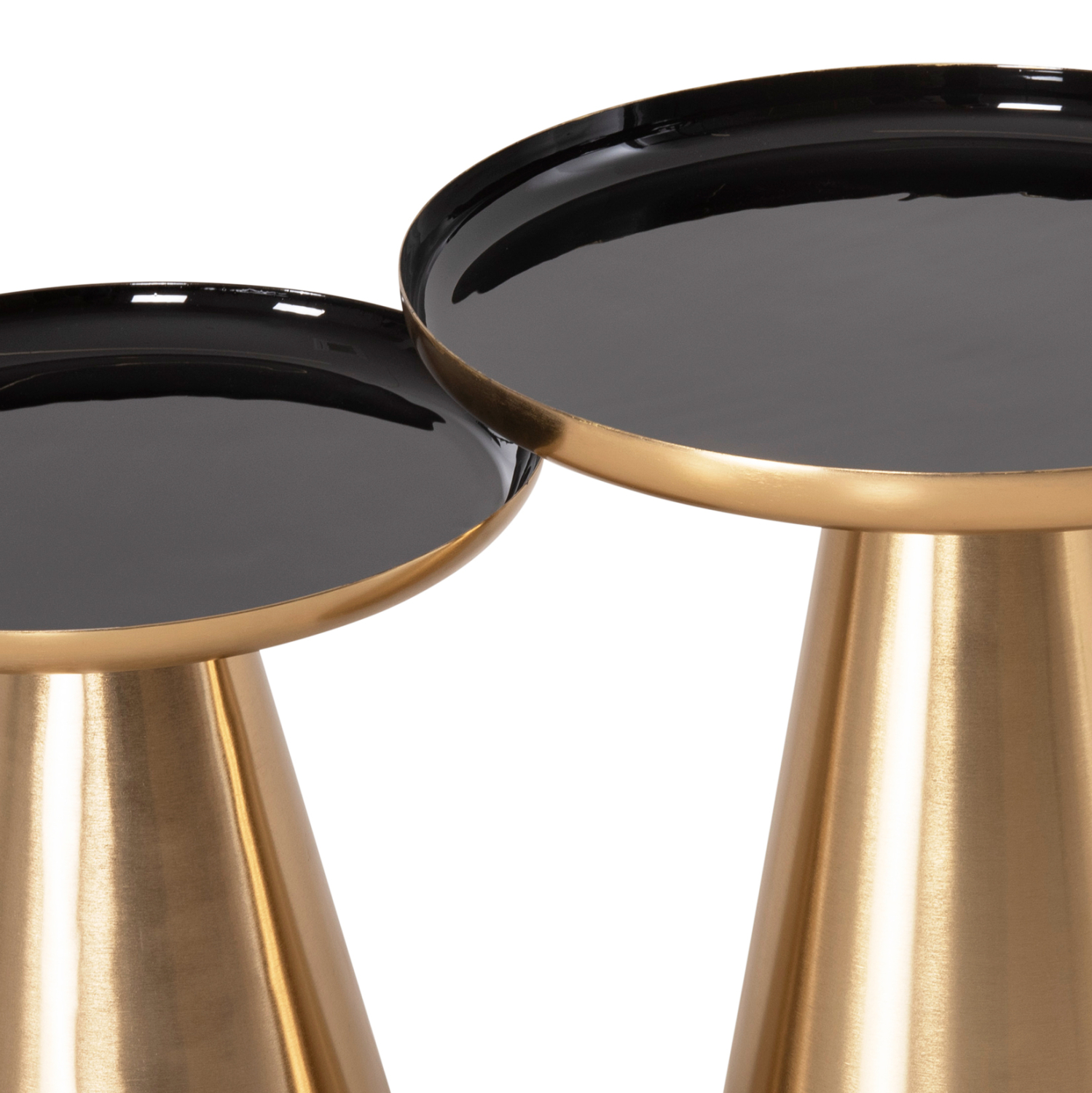 Το σετ 2 τραπεζιών FB99921 για το σαλόνι είναι μια από τις νέες προσθήκες στην γκάμα μας. Πρόκειται για 2 μεταλλικά τραπεζάκια στρογγυλά με κωνική βάση σε ΧΡΥΣΟ γυαλιστερό χρώμα. Οι επιφάνειες είναι glossy ΜΑΥΡΕΣ και έχουν χρυσή περίμετρο. Ιδανικά τόσο για το σπίτι, όσο και για επαγγελματικούς χώρους.