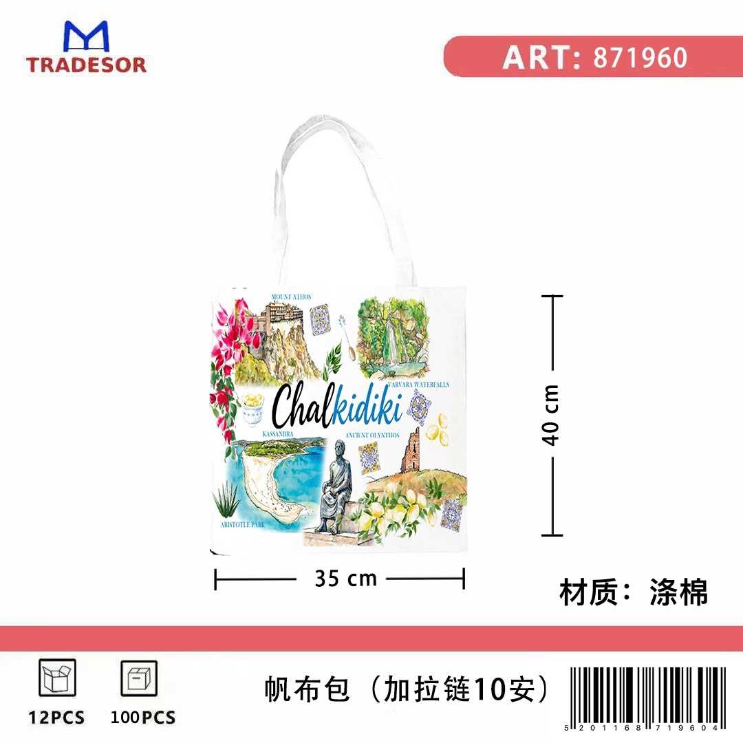Υφασμάτινη τουριστική τσάντα καμβάς με φερμουάρ - Chalkidiki - 35*40cm - 871960