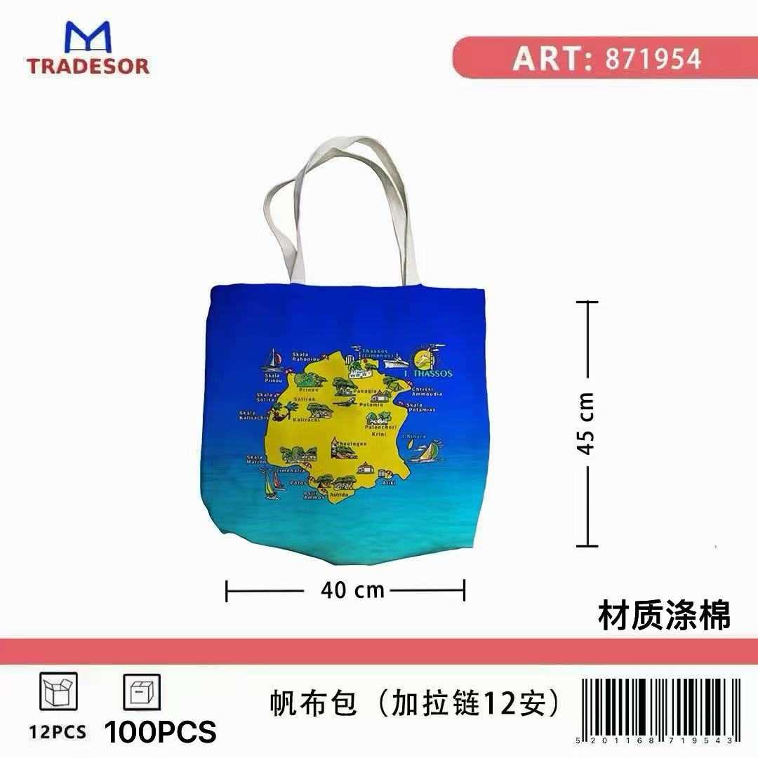 Υφασμάτινη τουριστική τσάντα καμβάς με φερμουάρ - Thassos - 45*40*10cm - 871954