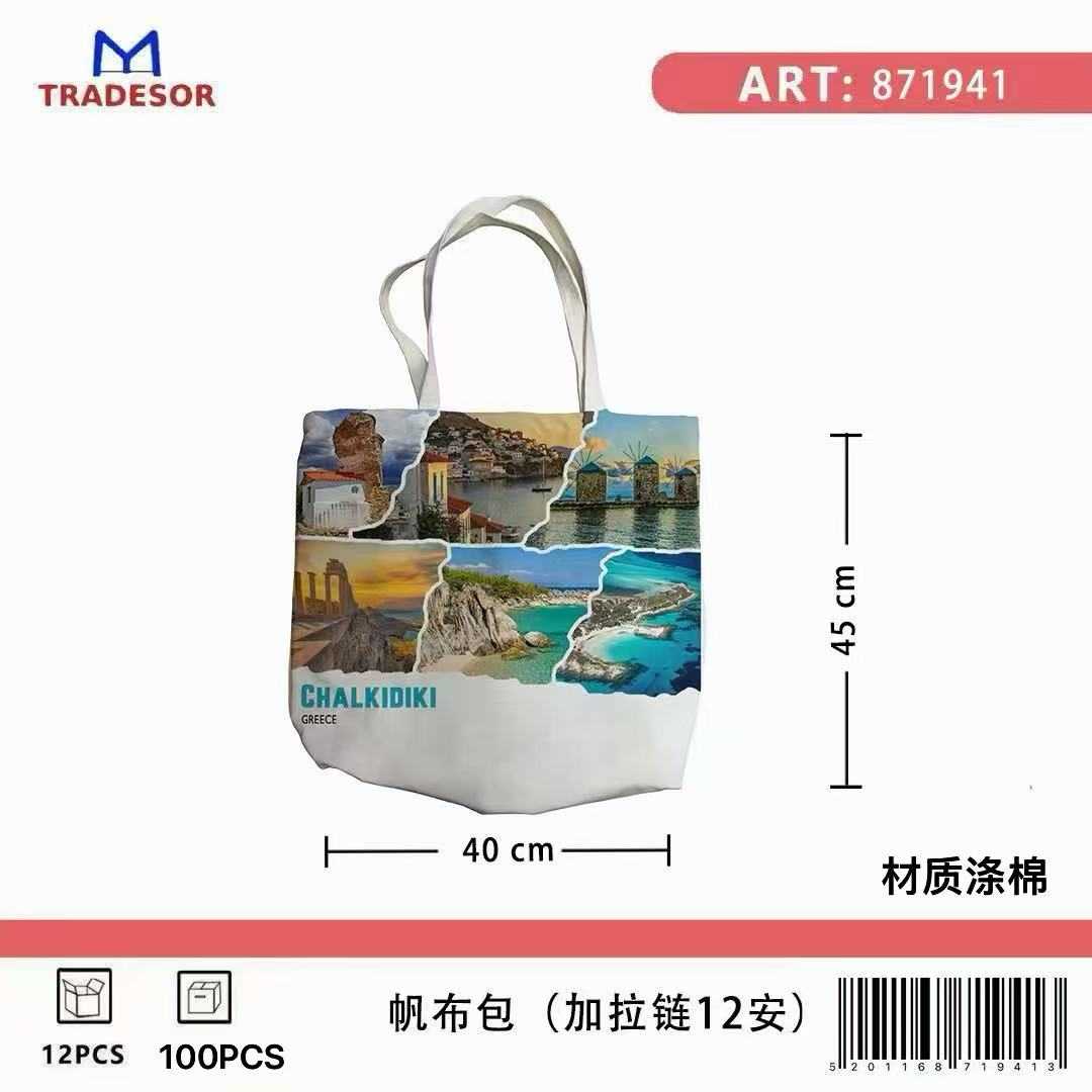 Υφασμάτινη τουριστική τσάντα καμβάς με φερμουάρ - Chalkidiki - 35*40cm - 871961