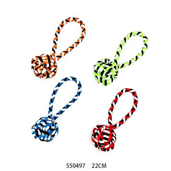 Παιχνίδι σκύλου πλεκτό σχοινί με μπάλα, κατασκευασμένο από ιδιαίτερα ανθεκτικό ελαστικό ύφασμα, μη τοξικό, ιδανικό για πολλαπλά είδη παιχνιδιού και άσκησης. Θα γίνει το αγαπημένο καθημερινό παιχνίδι που το σκυλί σας θα λατρέψει.