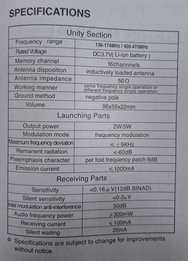 Συχνότητα: 136-174MHz / 400-470.MHz
