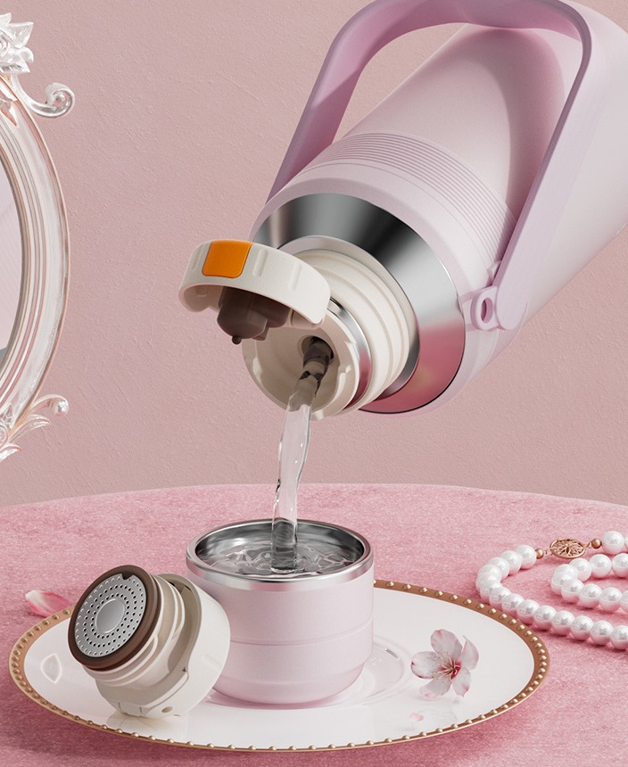 Φορητό παγούρι-θερμός με εσωτερικό από 100% ανοξείδωτο ατσάλι, διπλά τοιχώματα και περίβλημα υψηλής ανθεκτικότητας που διατηρεί τη θερμοκρασία του περιεχομένου σταθερή για ώρες. Το ανοξείδωτο ατσάλι εξασφαλίζει μεγάλη αντοχή στο χρόνο και απόλυτα υγιεινή χρήση χωρίς τις τοξικές ουσίες που περιλαμβάνουν τα κοινά πλαστικά παγούρια. Δεν απορροφάει γεύσεις και μυρωδιές. Διαθέτει βιδωτό καπάκι Vacuum και καπάκι-κούπα. Εργονομικός σχεδιασμός με χειρολαβή για εύκολη μεταφορά. Πλένεται πολύ εύκολα.