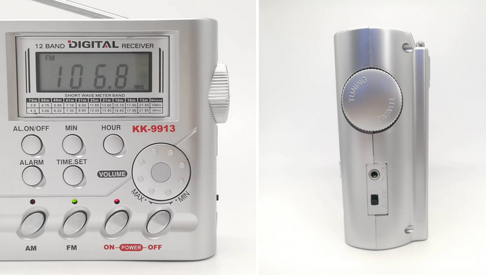 Ψηφιακή οθόνη Ψηφιακό ρολόι alarm με ξυπνητήρι Πτυσσόμενη κεραία για σταθερό σήμα Υποστηριζόμενες Συχνότητες: AM, FM, SW Υποδοχή για ακουστικά Jack 3.5mm Τάση: DC 4.5V Λουράκι μεταφοράς.