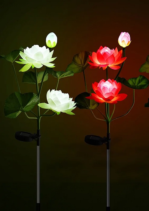 Φωτιζόμενα διακοσμητικά λουλούδια LED με ηλιακό πάνελ φόρτισης και ενσωματωμένη επαναφορτιζόμενη μπαταρία, ιδανικά διακοσμητικά για χρήση σε σημεία που δεν έχουν εύκολη πρόσβαση σε ηλεκτρικό ρεύμα, καθώς τοποθετούνται και χρησιμοποιούνται εξολοκλήρου ασύρματα. Περιλαμβάνουν ειδικό μεταλλικό πάσσαλο για εύκολη και σταθερή τοποθέτηση στο χώμα του κήπου σας ή σε γλάστρα. Σετ 2 τεμαχίων.