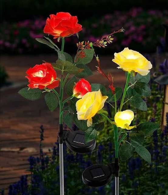 Φωτιζόμενα διακοσμητικά λουλούδια LED με ηλιακό πάνελ φόρτισης και ενσωματωμένη επαναφορτιζόμενη μπαταρία, ιδανικά διακοσμητικά για χρήση σε σημεία που δεν έχουν εύκολη πρόσβαση σε ηλεκτρικό ρεύμα, καθώς τοποθετούνται και χρησιμοποιούνται εξολοκλήρου ασύρματα. Περιλαμβάνουν ειδικό μεταλλικό πάσσαλο για εύκολη και σταθερή τοποθέτηση στο χώμα του κήπου σας ή σε γλάστρα. Σετ 2 τεμαχίων.