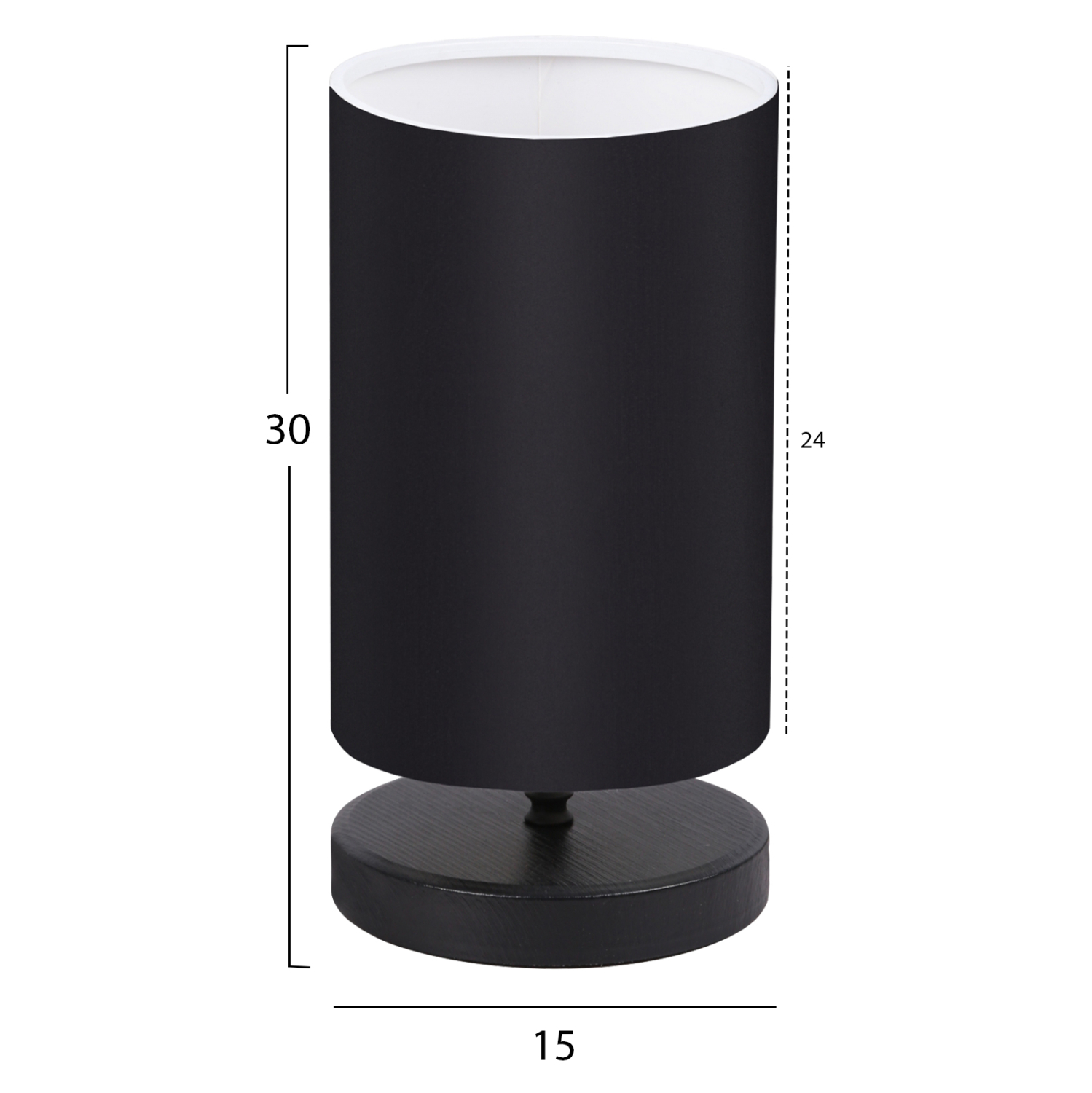 Επιτραπέζιο διακοσμητικό φωτιστικό με κυκλική βάση σε μαύρο χρώμα και «καπέλο» κυλινδρικό επίσης σε μαύρο χρώμα. Το φως του φωτιστικού διαχέεται γλυκά στον χώρο και δημιουργεί μια ζεστή ατμόσφαιρα. Αυτού του είδους τα φωτιστικά δεν προορίζονται για φωτιστικά διαβάσματος και αυτό πρέπει πάντα να λαμβάνεται υπόψη κατά την επιλογή τους. Είναι καθαρά διακοσμητικά και το ταίριασμά τους με τον περιβάλλοντα χώρο θα πρέπει να είναι αρμονικό. Αυτό το φωτιστικό είναι λιτό, κομψό και βολικό σε διαστάσεις παρέχοντας αμέτρητες δυνατότητες «δεσίματος» με την υπόλοιπη διακόσμησή σας. Είναι ένα μικρό έργο τέχνης.