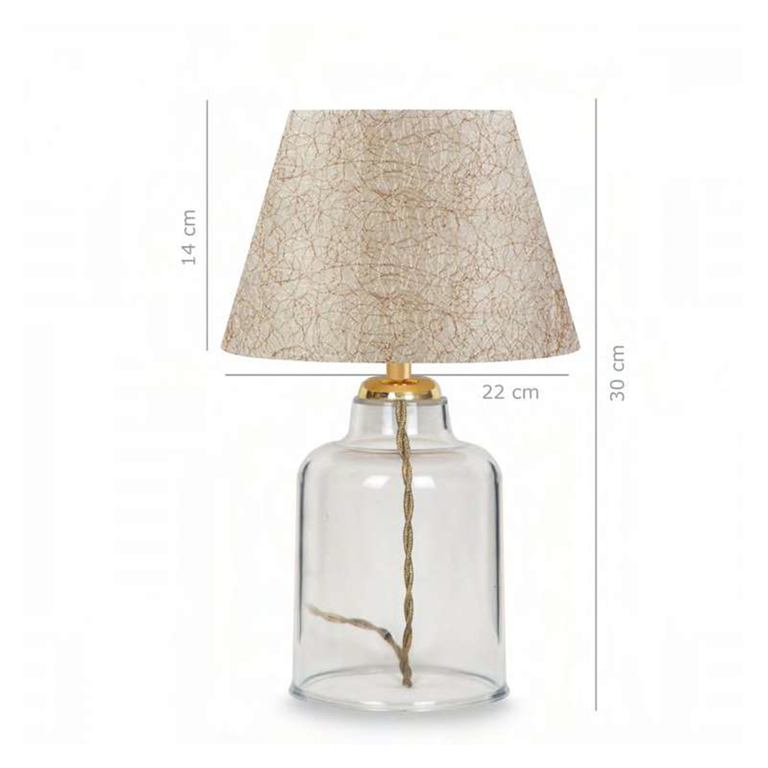 Φωτίστε τον χώρο που επιθυμείτε με το ευέλικτο επιτραπέζιο φωτιστικό με διαφανή πλαστικό κορμό. Ένας ειδυλλιακός συνδυασμός casual γοητείας και στιλβωμένου σχεδιασμού προσδίδει μια διαχρονικότητα που δεν θα γεράσει. Ο διαφανής κορμός κρατά αυτό το επιτραπέζιο φωτιστικό ελαφρύ και ευάερο. Η βάση και το «καπέλο» σε σχήμα ανοιχτής καμπάνας σε χρώμα εκρού συνδυάζονται για να δώσουν σε αυτή τη λάμπα την τέλεια υφή και χαρακτήρα αγροικίας. Η χρυσή κολώνα που αρχίζει να φαίνεται στην κορυφή του κορμού με το χρυσής απόχρωσης καλώδιο, δημιουργούν έναν όμορφο συνδυασμό, ενώνοντας ολόκληρη την εμφάνιση και προσθέτοντας στην απλή κομψότητα της λάμπας.