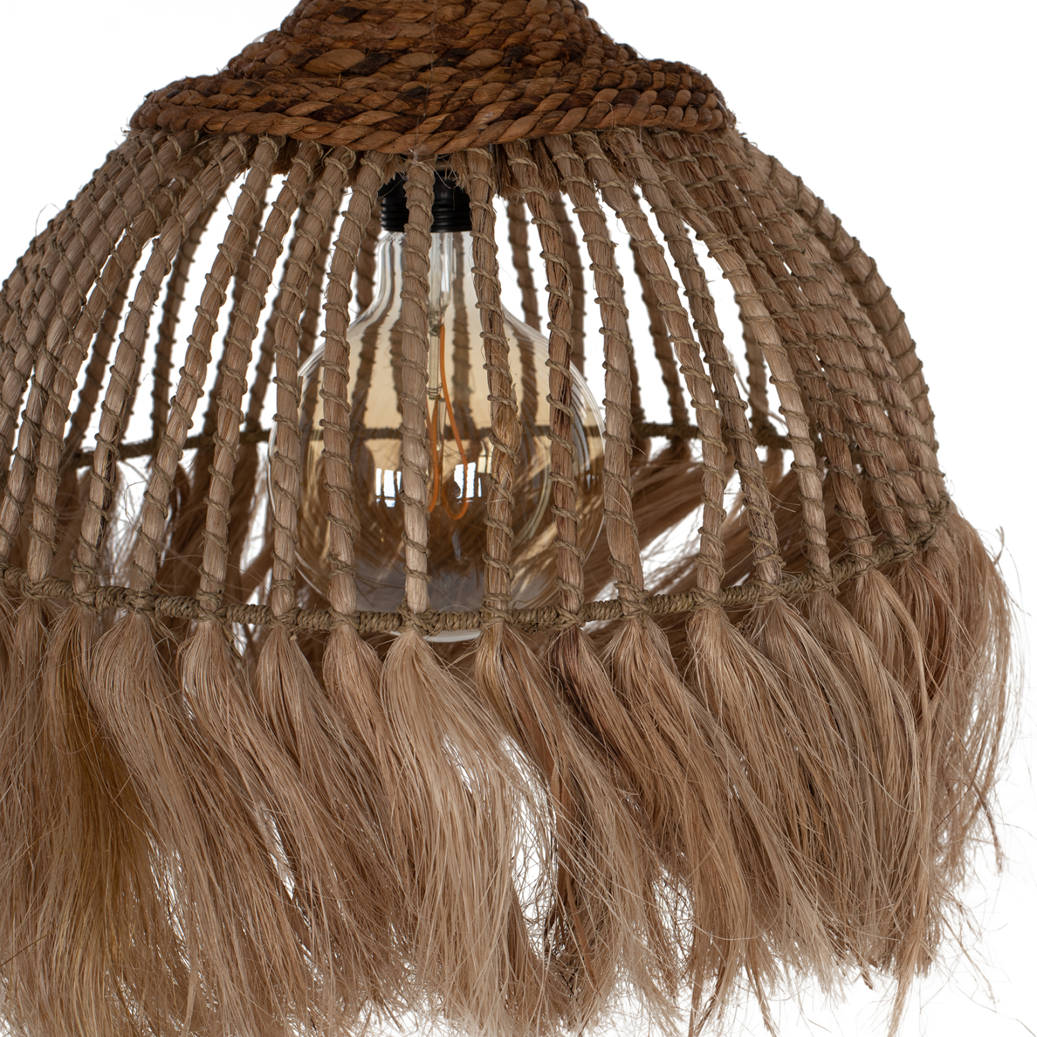 FB97751- Kρεμαστό φωτιστικό—- Αν επιθυμείτε να διακοσμήσετε το χώρο σας με ένα φωτιστικό σε boho στυλ, αυτό είναι η πιο σωστή επιλογή. Είναι ένα μονόφωτο φωτιστικό για επαγγελματική χρήση, με «καπέλο» σε σχήμα καμπάνας φτιαγμένο από σκοινί, υψηλής ποιότητας και αντοχής στο χρόνο. Το ιδιαίτερο χαρακτηριστικό, όμως, αυτού του φωτιστικού είναι ότι το «καπέλο» καταλήγει σε κρόσια, επιτείνοντας ακόμα περισσότερο το boho στυλ.