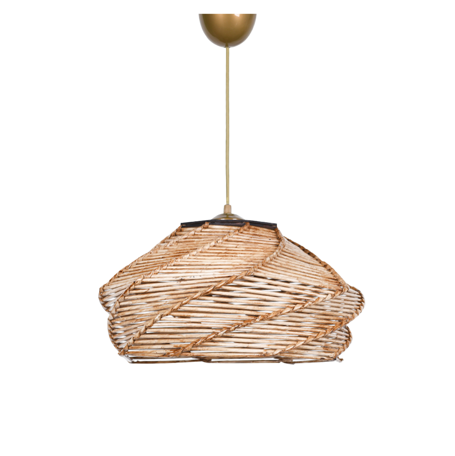 Μοντέρνο κρεμαστό φωτιστικό οροφής, κατασκευασμένο από ξύλινο σκελετό και επενδυμένο από bamboo υλικό σε φυσική απόχρωση.