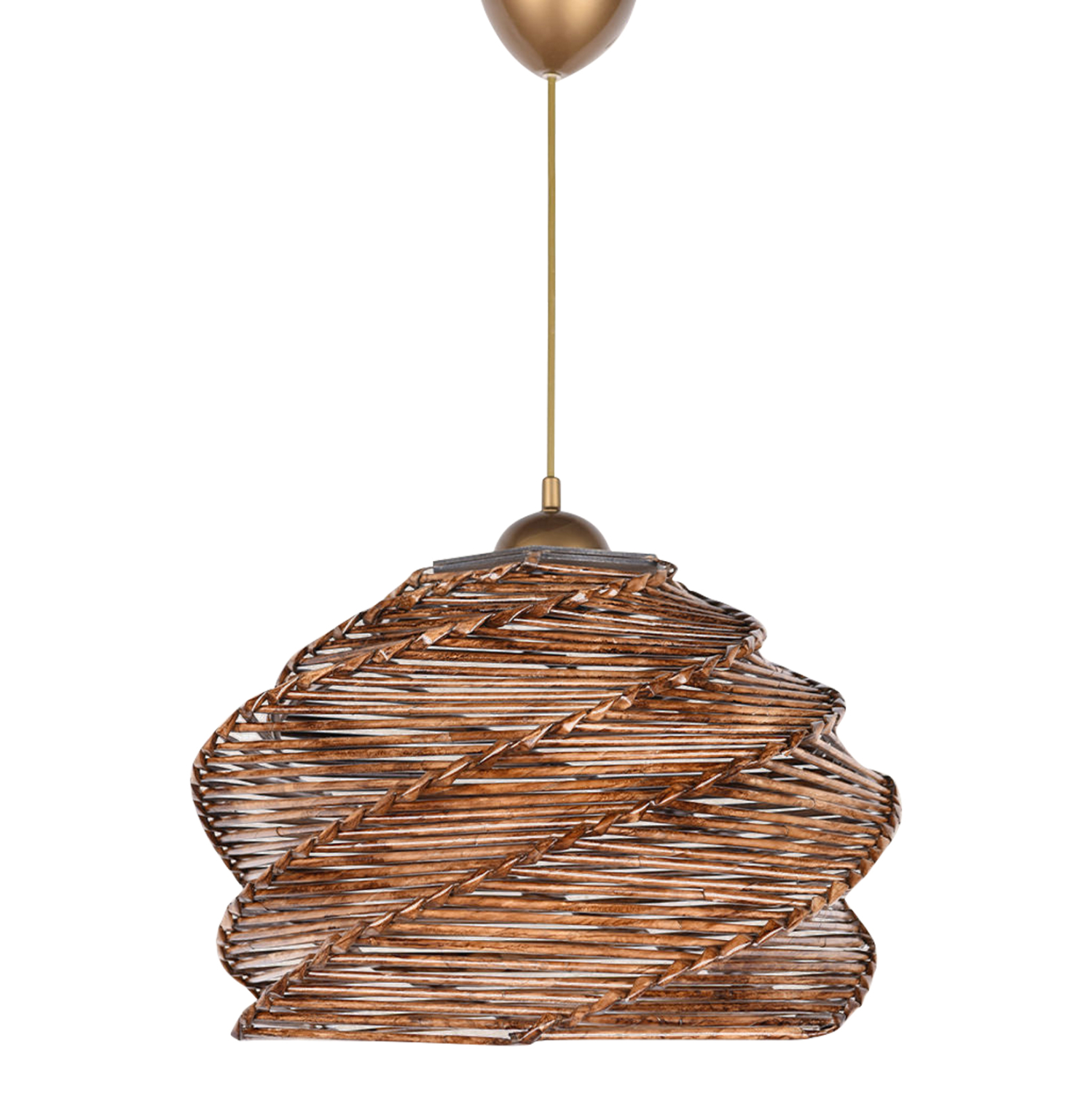 Μοντέρνο κρεμαστό φωτιστικό οροφής, κατασκευασμένο από ξύλινο σκελετό και επενδυμένο από bamboo υλικό σε καρυδί απόχρωση.