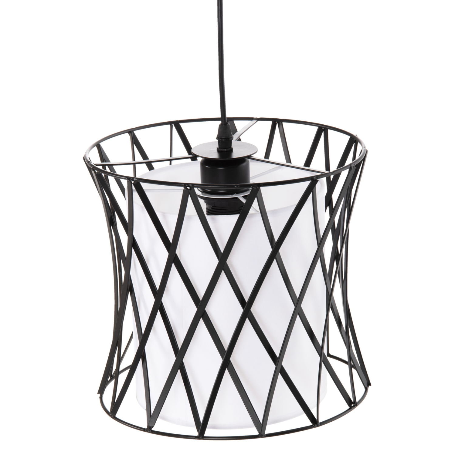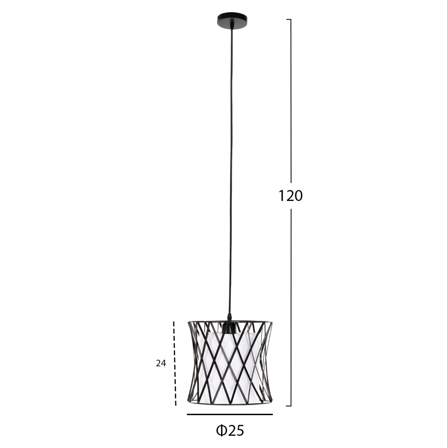 FB94106—Γνωρίστε το νέο πρωτότυπο και φινετσάτο μονόφωτο οροφής στην γκάμα μας και ολοκληρώστε την διακόσμησή σας. Το ΜΑΥΡΟ μεταλλικό καπέλο σε δικτυωτή υλοποίηση με το ΛΕΥΚΟ κυλινδρικό κάλυμμα λάμπας, διαχέει το φως γλυκά, και είναι η επιτομή του μοντέρνου design στα φωτιστικά οροφής.