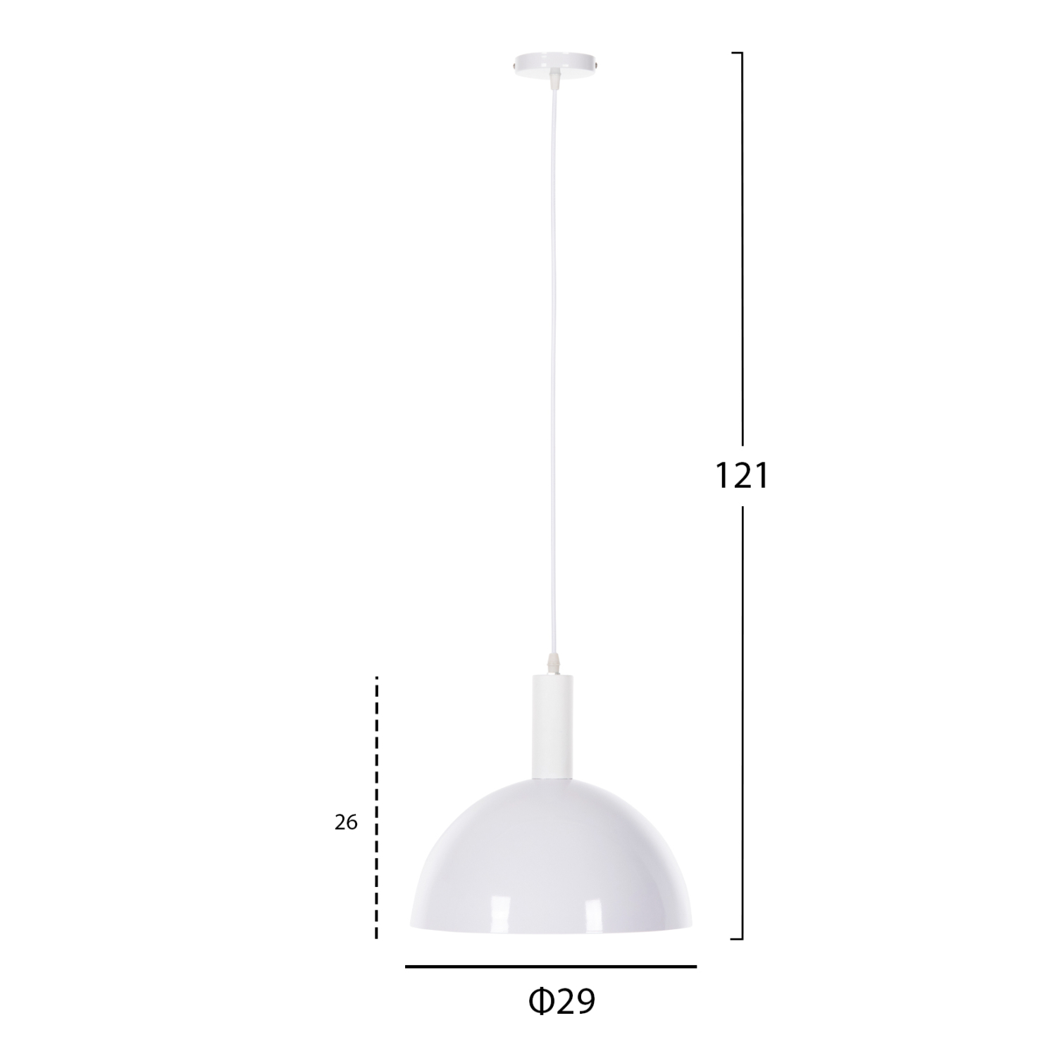 FB94111—Γνωρίστε το νέο πρωτότυπο και φινετσάτο μονόφωτο οροφής στην γκάμα μας και ολοκληρώστε την διακόσμησή σας. Η ΛΕΥΚΗ συμπαγής μεταλλική καμπάνα σε συνδυασμό με το μαύρο καλώδιο κρέμασης είναι η επιτομή του μοντέρνου design στα φωτιστικά οροφής.