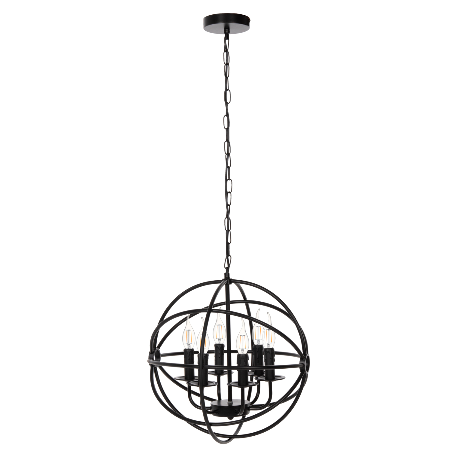Αφήστε το φως να απλωθεί στον χώρο με ένα πρωτότυπο και φινετσάτο 6-φωτο κρεμαστό φωτιστικό οροφής, ολοκληρώνοντας την διακόσμησή σας. H ΜΑΥΡΗ μεταλλική σφαίρα που κρέμεται από μια αλυσίδα, είναι η επιτομή του μοντέρνου design.