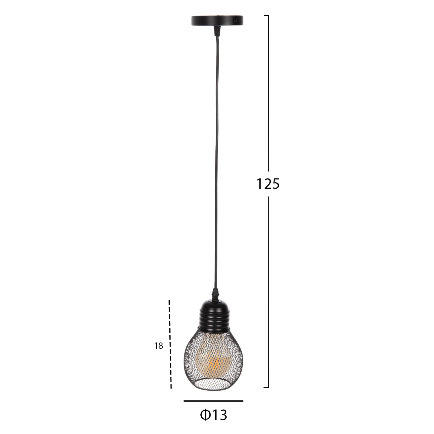 ΦΩΤΙΣΤΙΚΟ ΟΡΟΦΗΣ ΚΡΕΜΑΣΤΟ FB94171 ΜΑΥΡΟ ΜΕΤΑΛΛΙΚΟ ΔΙΚΤΥΩΤΟ ΚΑΠΕΛΟ Φ13x125Yεκ.