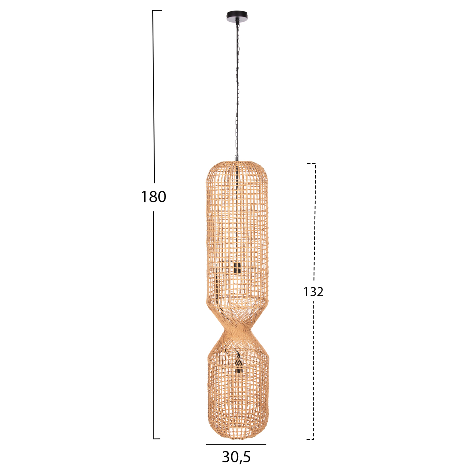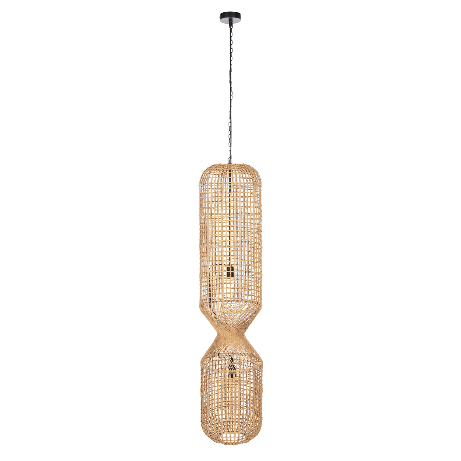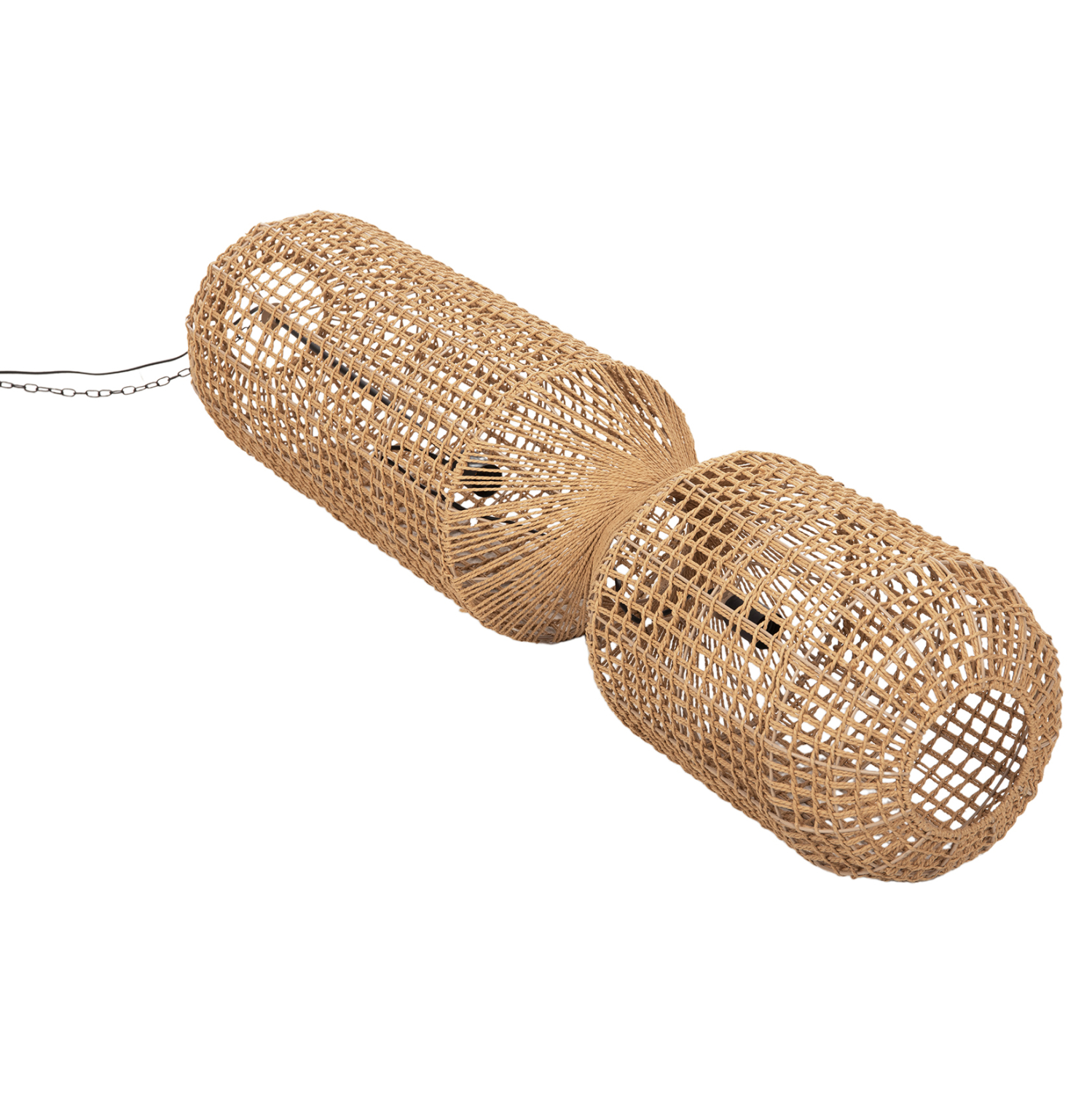 Ανακαλύψτε αυτή την νέα προσθήκη στην γκάμα των φωτιστικών μας. Πρόκειται για ένα επιβλητικό κρεμαστό φωτιστικό οροφής σε σχήμα κυλίνδρου που δέχεται 2 λάμπες σε κατακόρυφη διάταξη. Ο σκελετός είναι μεταλλικός αλλά αυτό που κυριαρχεί είναι η επένδυση με paper rope εξαιρετικής ποιότητας σε χρώμα ΜΠΕΖ της άμμου. Ένα όμορφο φωτιστικό που διαχέει το φως προς κάθε κατεύθυνση και δημιουργεί την ατμόσφαιρα που πάντα φανταζόσασταν για τον χώρο σας.