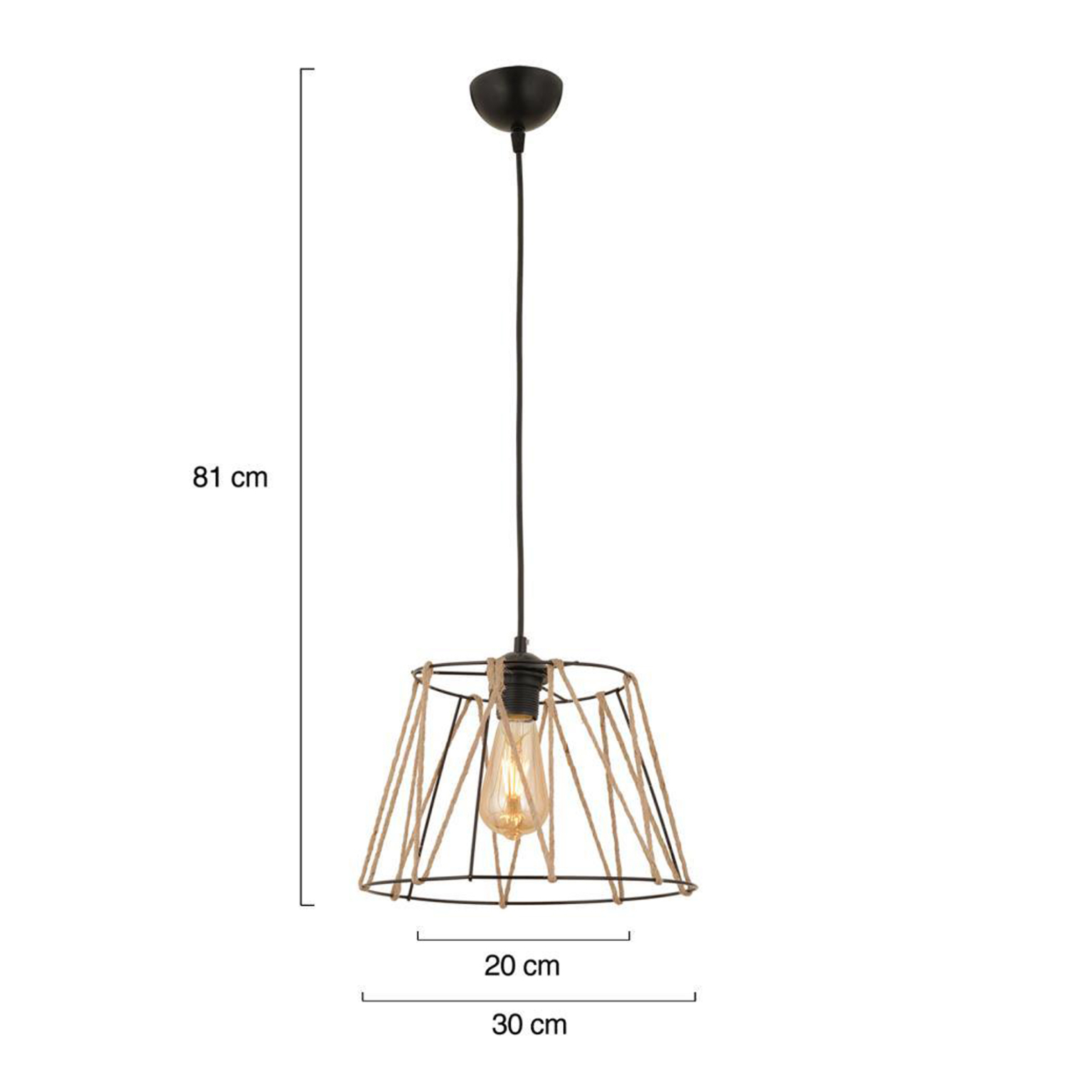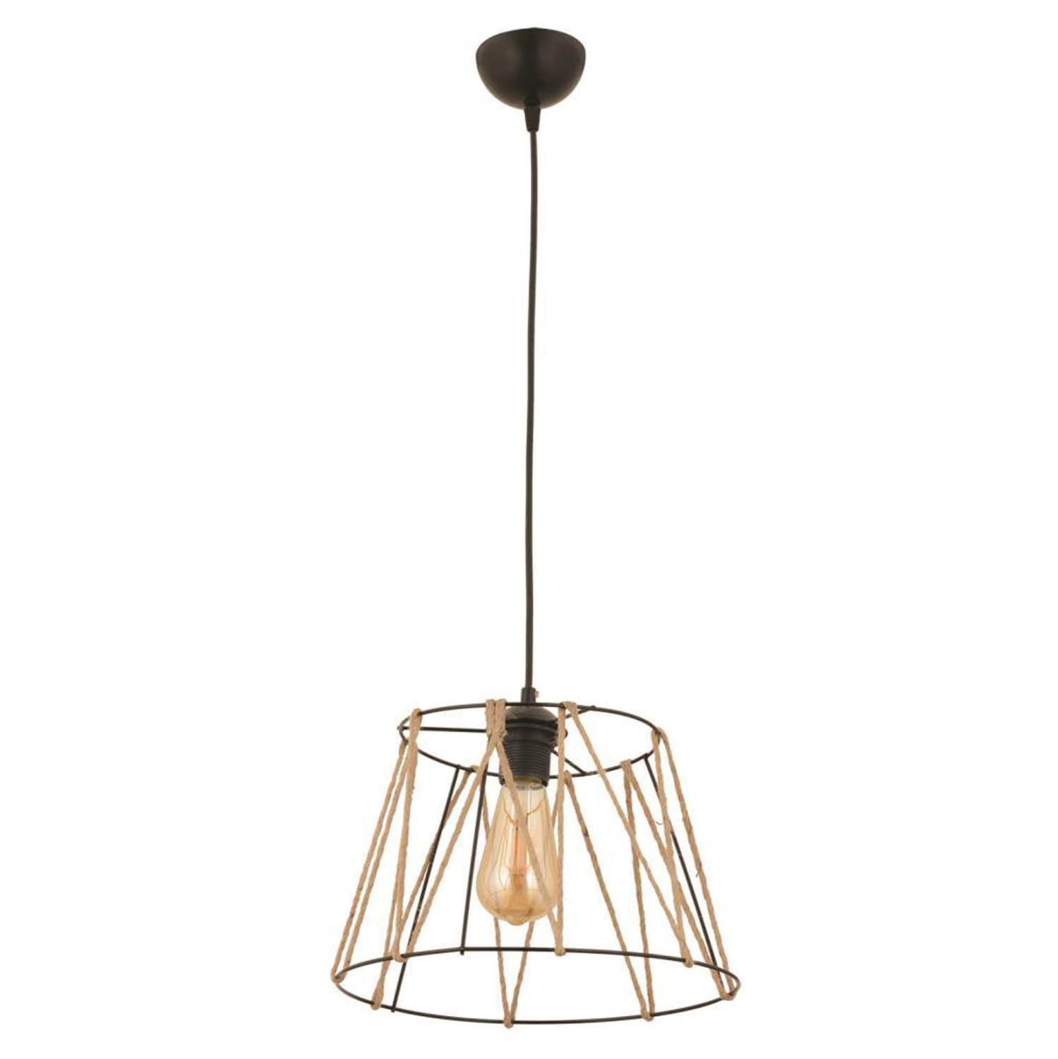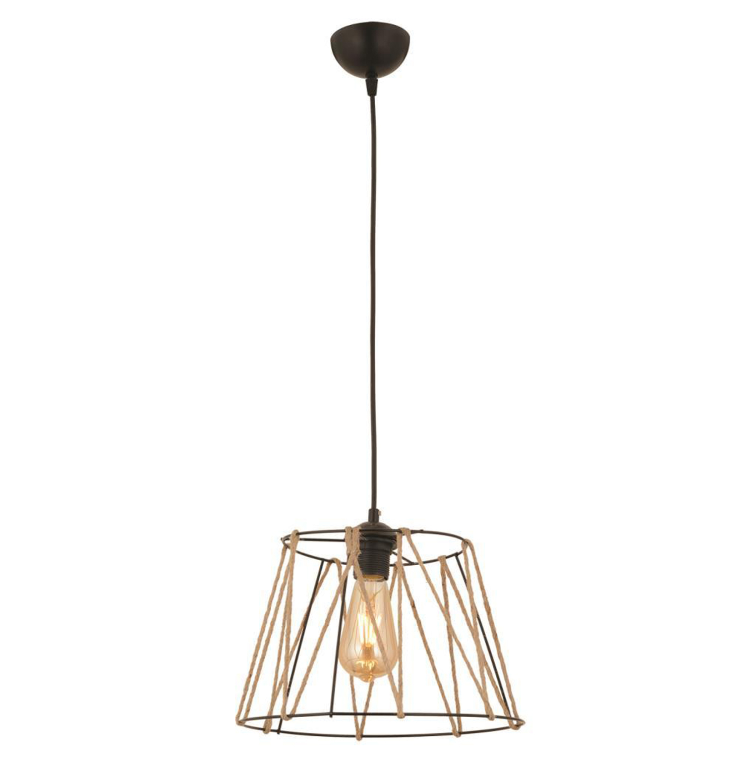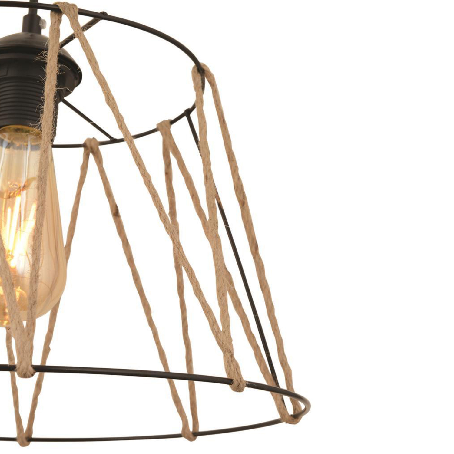 Φωτιστικό οροφής, σε μαύρη απόχρωση με σχοινί σε μπεζ χρώμα.