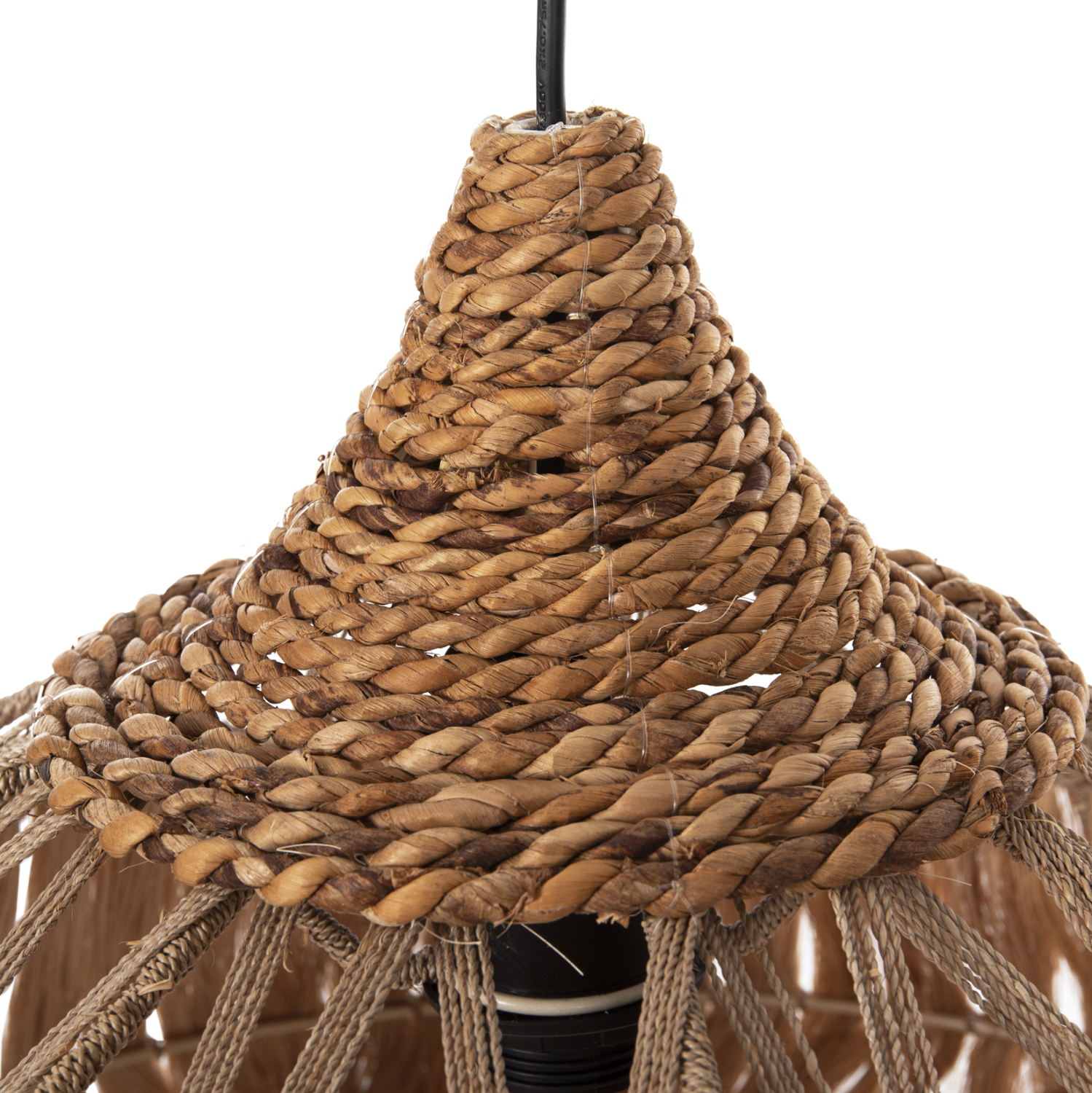 FB97764- Kρεμαστό φωτιστικό—- Αν επιθυμείτε να διακοσμήσετε το χώρο σας με ένα φωτιστικό σε ιδιαίτερο στυλ, αυτό είναι μια χαρακτηριστική επιλογή. Είναι ένα μονόφωτο φωτιστικό με «καπέλο» σε κυλινδρικό σχήμα φτιαγμένο από ίνες κάνναβης Μανίλας σε φυσικό χρώμα. Το ιδιαίτερο χαρακτηριστικό αυτού του φωτιστικού είναι ότι το καπέλο δένεται με το καλώδιο κρέμασης με σχοινιά αφήνοντας όλο το επάνω μέρος ανοιχτό.