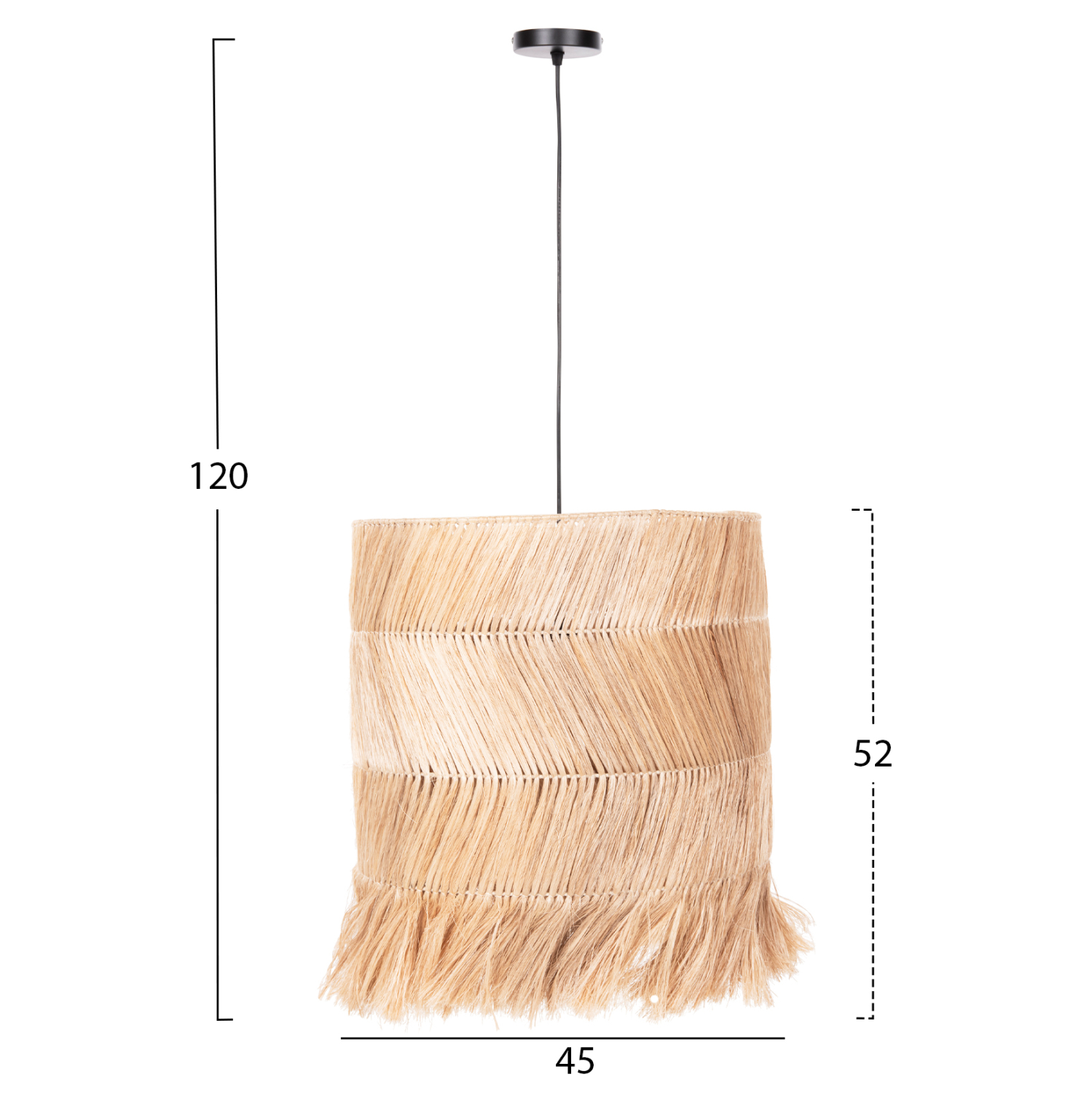 FB97757- Kρεμαστό φωτιστικό—- Αν επιθυμείτε να διακοσμήσετε το χώρο σας με ένα φωτιστικό σε boho στυλ, αυτό είναι η πιο σωστή επιλογή. Είναι ένα μονόφωτο φωτιστικό με μακρύ κυλινδρικό «καπέλο» φτιαγμένο από ίνες κάνναβης Μανίλας ή αλλιώς αμπακά, σε φυσικό χρώμα (ξανθό) σε 3 σειρές με αντίθετη φορά των ινών και κρόσια στο τελείωμα.