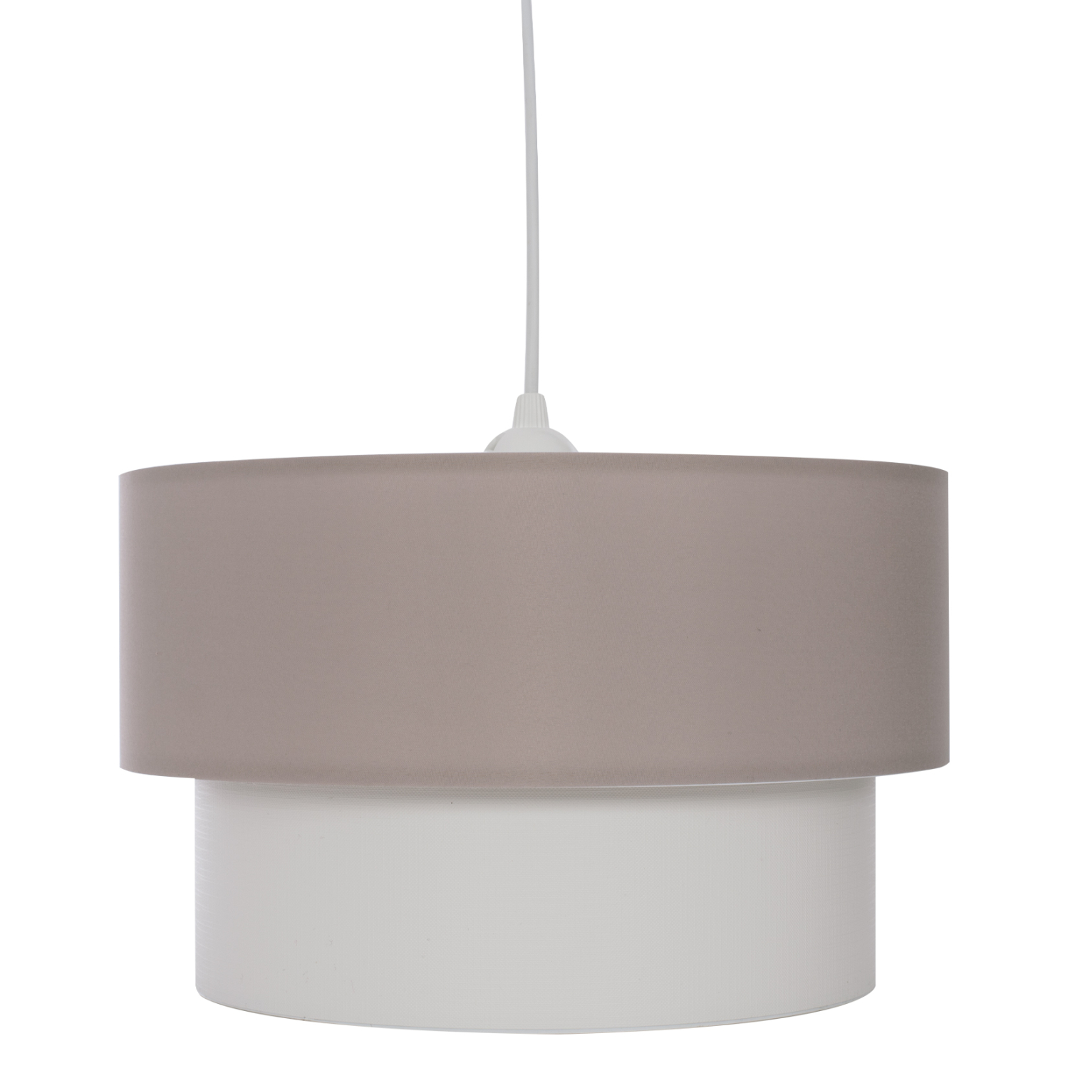 FB97619.04- κρεμαστό φωτιστικό —-Είτε είναι μέρα, είτε νύχτα, είτε είναι αναμμένο ή σβηστό, το κρεμαστό μονόφωτο φωτιστικό με διπλό υφασμάτινο «τύμπανο» προσφέρει στον χώρο σας στιγμιαία στυλιστική αναβάθμιση. Εκεί που νομίζατε ότι η αγάπη μας και η δική σας για οτιδήποτε υφασμάτινο δεν μπορούσε να φτάσει σε νέα σύνορα, ήρθαν αυτά τα φωτιστικά οροφής. Η υφή του υφάσματος μπορεί να είναι λίγο ασυνήθιστη για κρεμαστό φωτιστικό, αλλά χάρη στις λευκές εσωτερικές του επιφάνειες, δίνει στο φως μια απαλή λάμψη. Η απαλή διχρωμία των δύο «τυμπάνων» πραγματικά δίνει την εντύπωση της πολυτέλειας χωρίς όριο.