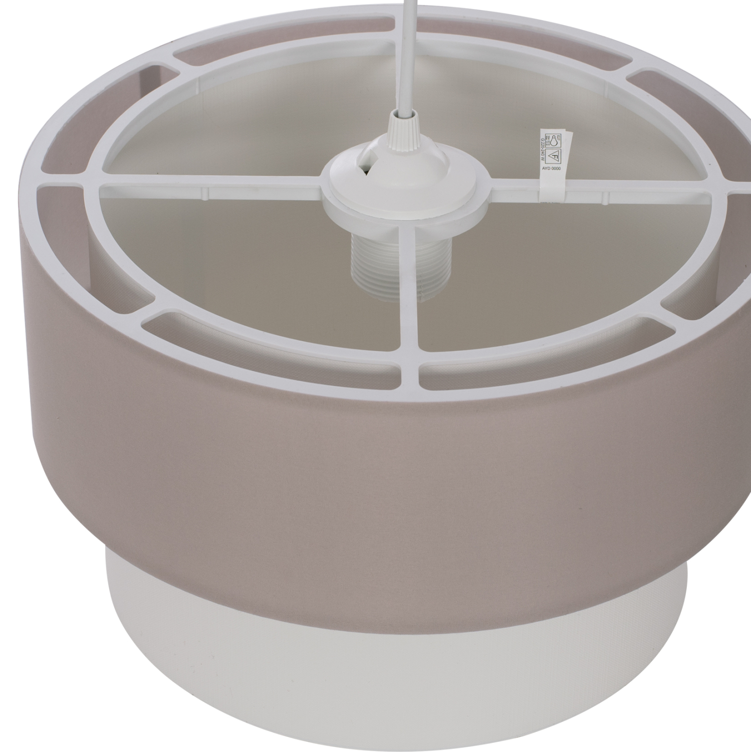 Οι «κύλινδροι» του φωτιστικού είναι κατασκευασμένοι από ύφασμα, ενώ ο σκελετός είναι από πολυαιθυλένιο, προσφέροντας αντοχή στον χρόνο και ευκολία στο καθάρισμα.