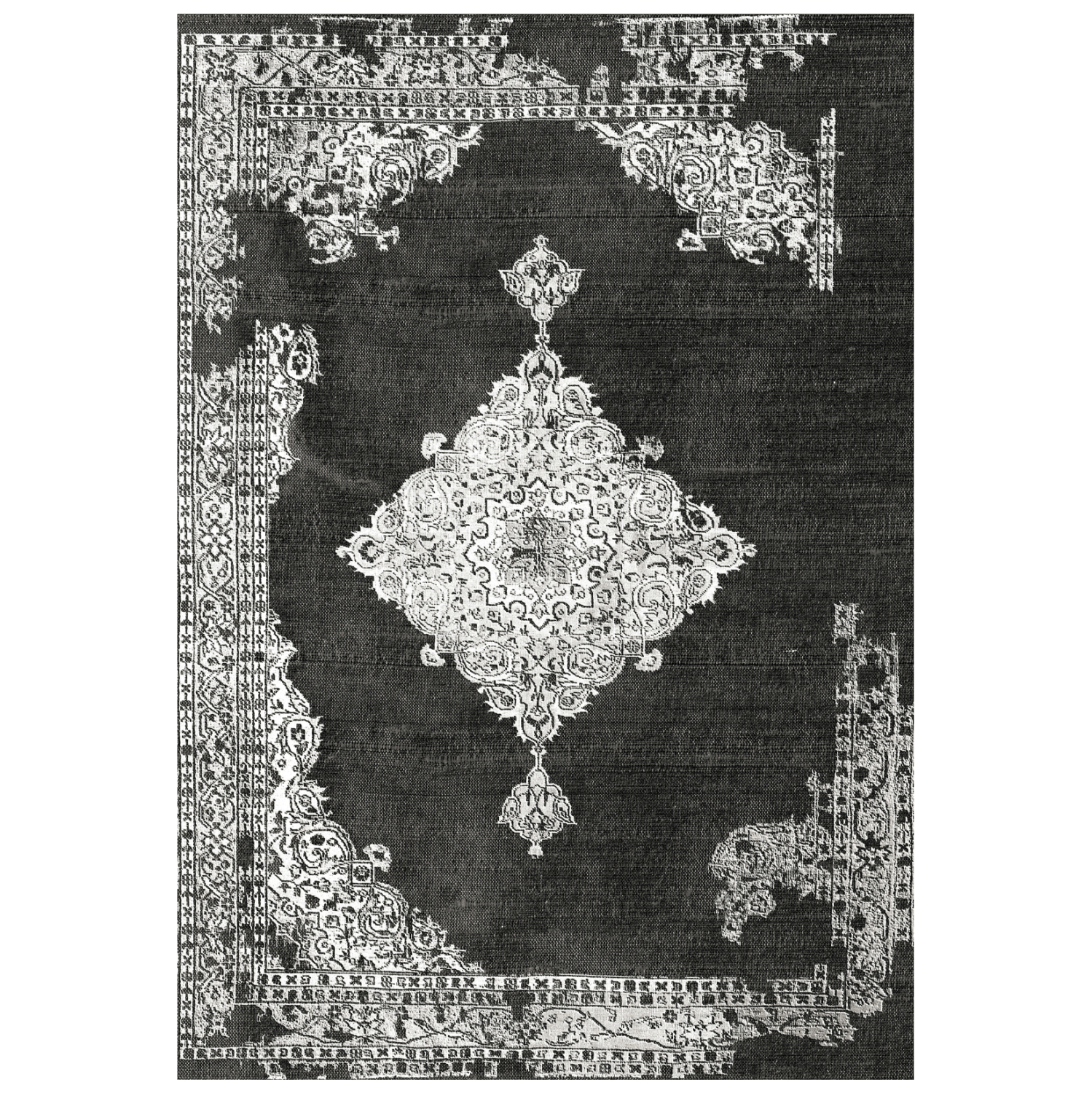 Αυτό το χαλί έχει κυρίαρχο φόντο σε γκρι-άσπρο με ευδιάκριτο σχέδιο στο κέντρο και γενικά το στυλ του χαλιού παραπέμπει σε ξεβαμμένη τοιχογραφία και σίγουρα θα αποτελέσει αντικείμενο συζητήσεων στο σαλόνι σας. Άλλωστε, η γοητεία πού ασκεί το χαλί είναι τόσο δυνατή, πού κανένα δεν αφήνει αδιάφορο.
