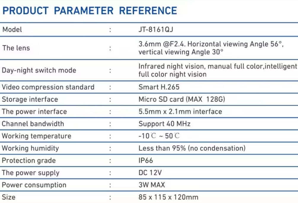 - Υποστηρίζει κάρτα SD δεν περιλαμβάνεται, έως 128gb, παρέχοντας τη δυνατότητα καταγραφής εικόνας σε πραγματικό χρόνο.