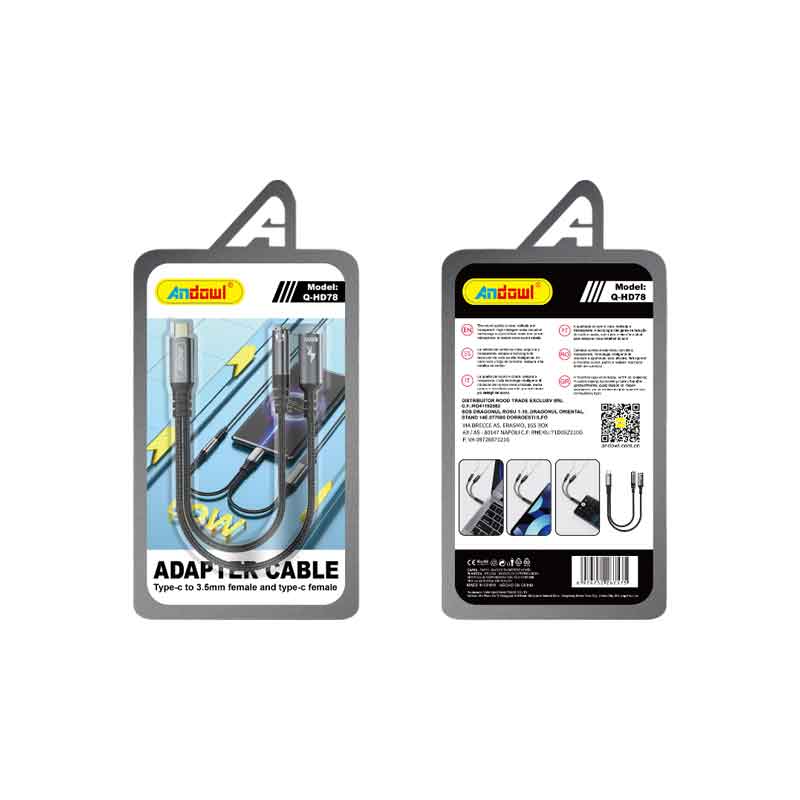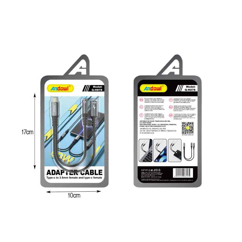 Andowl Αντάπτορας Καλώδιο Type-C σε 3.5mm Female και Type-C Female Q-HD78 – Adapter Cable