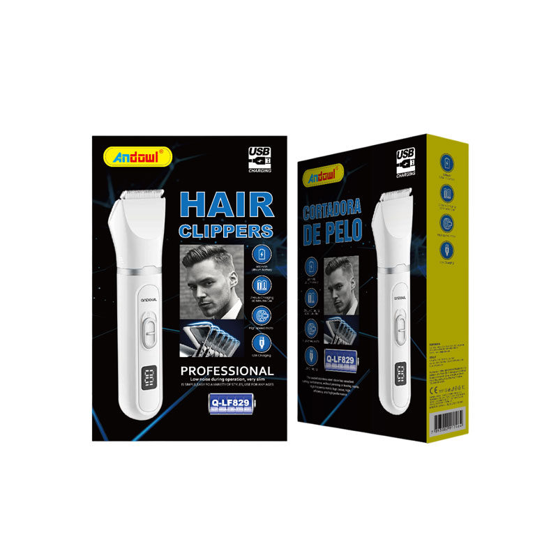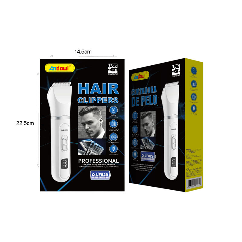 Κουρευτική μηχανή της εταιρίας Andowl, κατάλληλη για χρήση σε περιοχές όπως τα μαλλιά, τα γενιά και το σώμα. Λειτουργεί με μπαταρία.