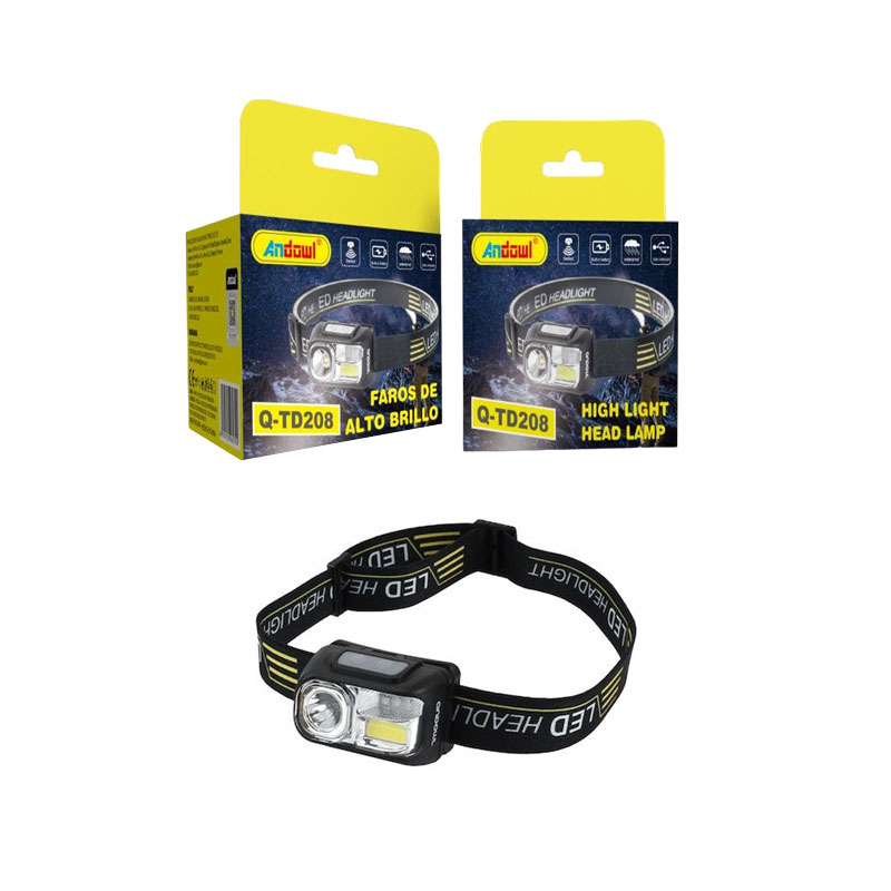 Φακός κεφαλής LED της Andowl για χρήση σε δραστηριότητες που θέλεις να έχεις ελεύθερα τα χέρια σου. Είναι επαναφορτιζόμενος και τροφοδοτείται μέσω της θύρας USB. Η μέγιστη ισχύς της φωτεινότητάς του φτάνει έως 400lm.