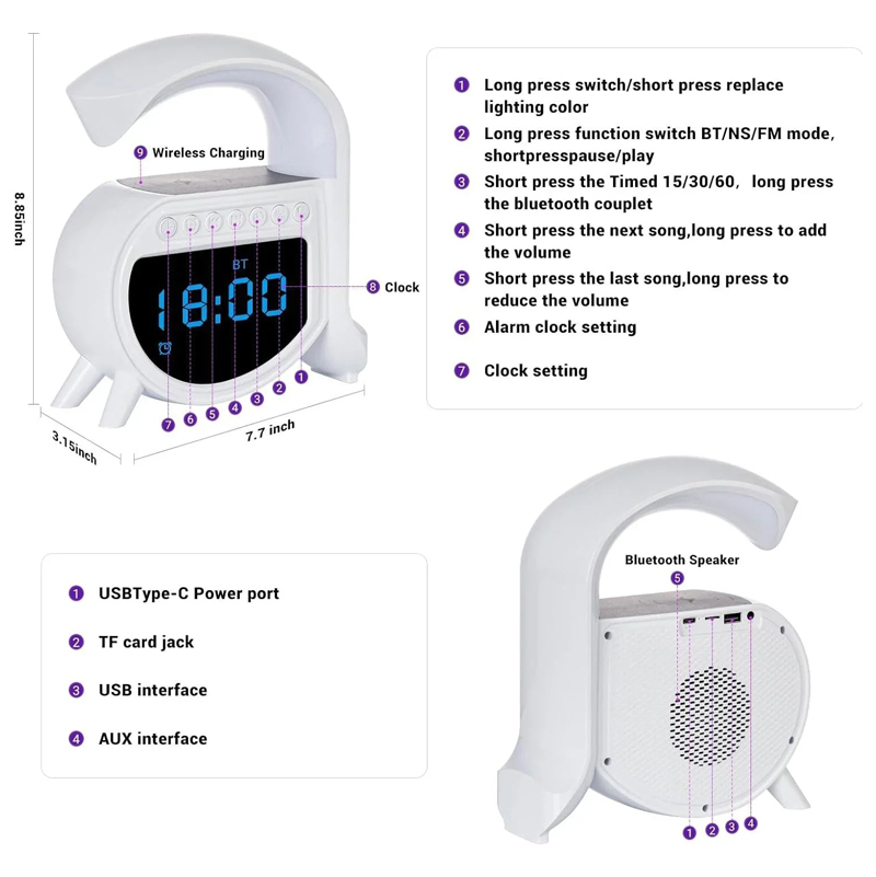 Αυτὀ το κομψό λευκὀ ξυπνητήρι παρέχει ένα ευρύ φάσμα λειτουργιών που σχεδιάστηκαν για να εμπλουτίσουν την καθημερινότητά σας.