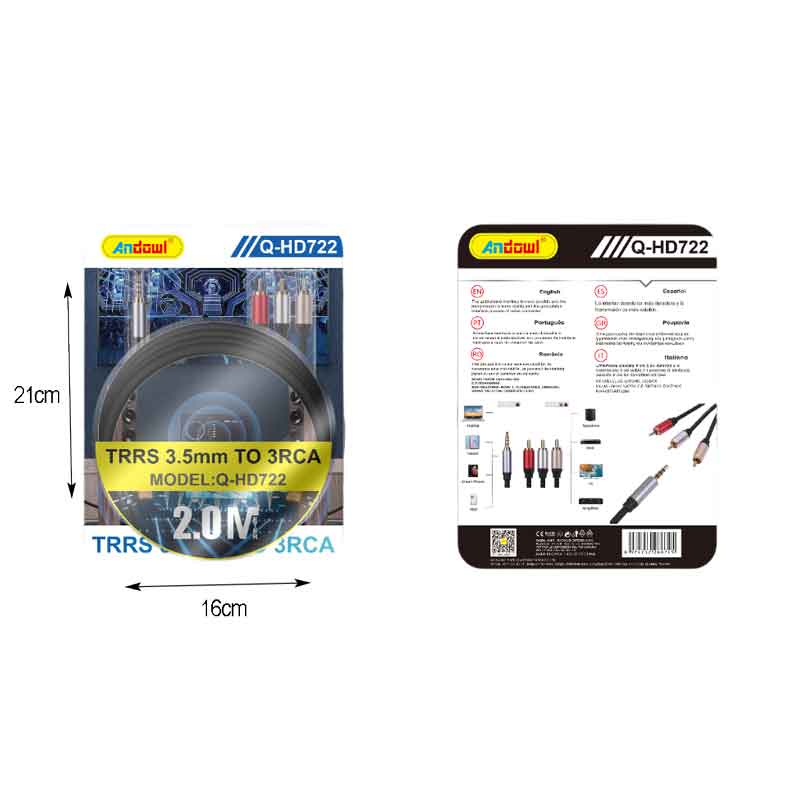 Andowl Καλώδιο ήχου TRRS 3.5mm σε 3RCA 2.0M Q-HD722 – Audio cable