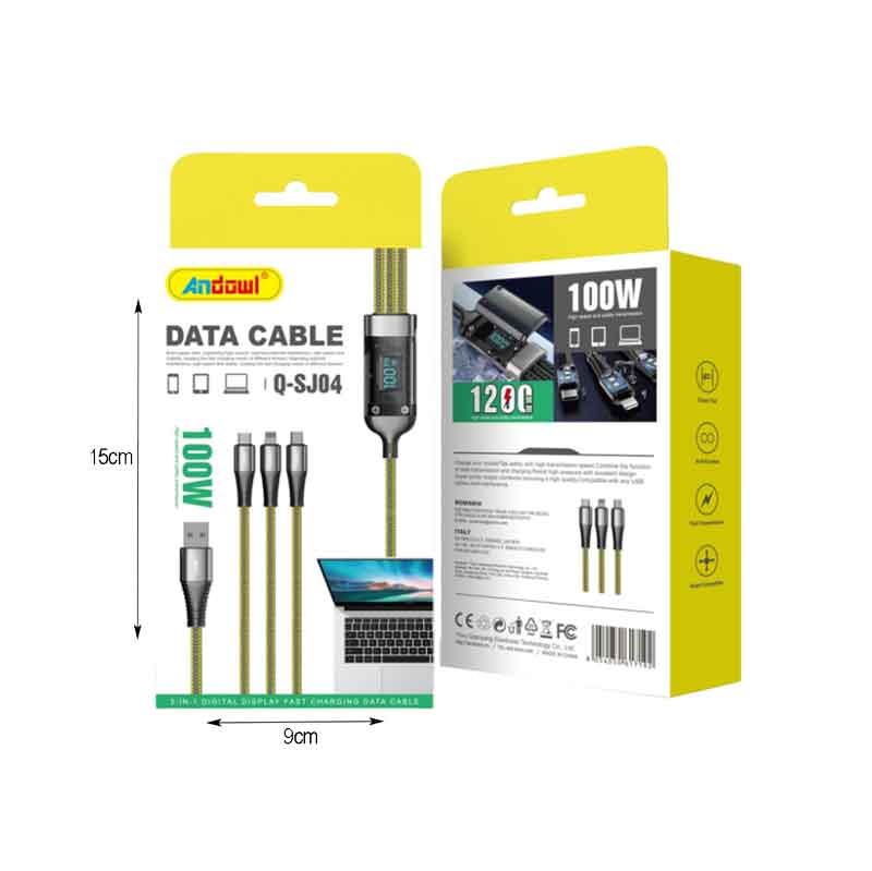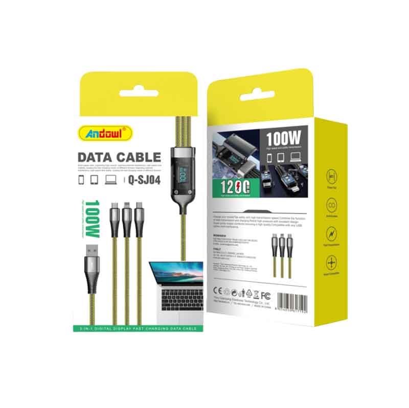 Andowl Καλώδιο δεδομένων 100w Usb-a Micro, Type-c, Lightning Q-SJ04 – Data Cable