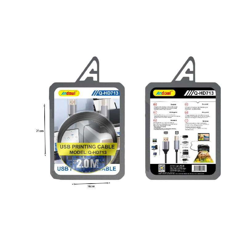 Andowl Καλώδιο Εκτυπωτή 2Μ Q-HD713- USB Printing Cable