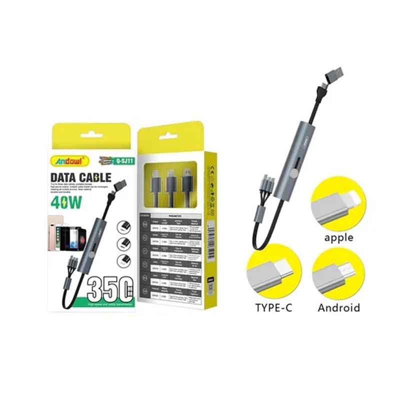 Καλώδιο φόρτισης και μεταφοράς δεδομένων 6 σε 1 με με ενσωματωμένο καλώδιο Micro / iOS / TypeC Andowl Q-SJ11