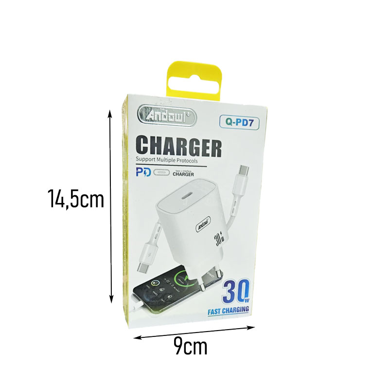 Ο φορτιστής Andowl Q-PD7 30W προσφέρει ταχεία και ασφαλή φόρτιση για όλες τις σύγχρονες συσκευές. Χάρη στην τεχνολογία Power Delivery (PD), προσαρμόζει αυτόματα την τάση και την ισχύ ανάλογα με τη συσκευή, εξασφαλίζοντας τη μέγιστη ταχύτητα χωρίς υπερθέρμανση ή φθορά της μπαταρίας.