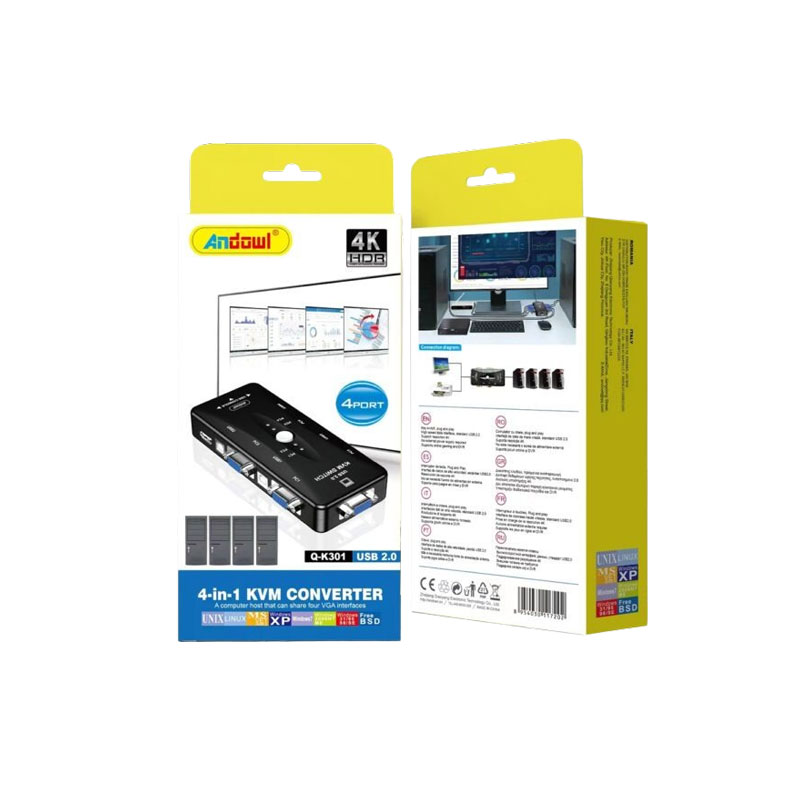 Andowl 4 σε 1 KVM Μετατροπέας USB 2.0 Q-K301 – 4-Port KVN Converter 075661