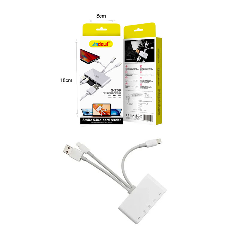 5 σε 1 Lightning+Type C+USB A Card Reader με 3 Καλώδια Andowl Q-Z09