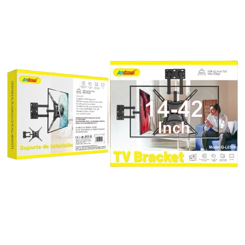Επιτοίχια βάση πλήρους κίνησης Q-L030B για τηλεοράσεις 14″ – 42″ με μέγιστο βάρος 50kg. Διαθέτει δυνατότητα κλίσης και περιστροφής για πλήρη προσαρμογή της επιθυμητής γωνίας θέασης.