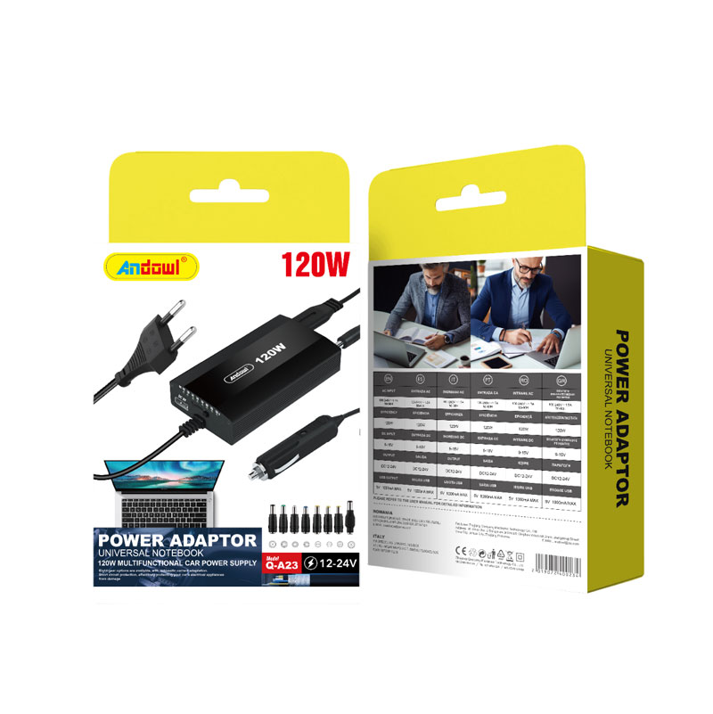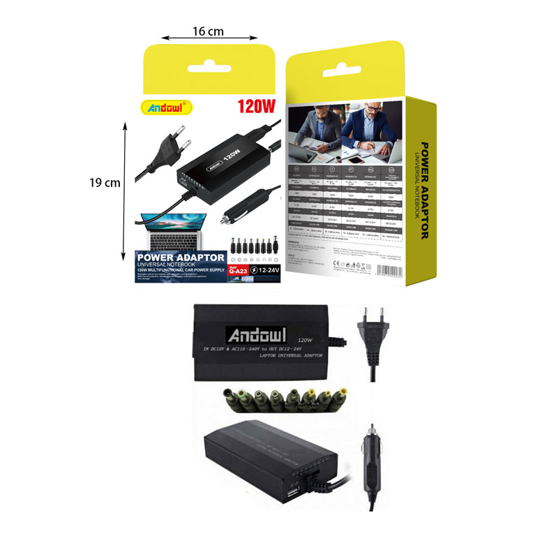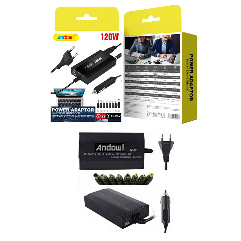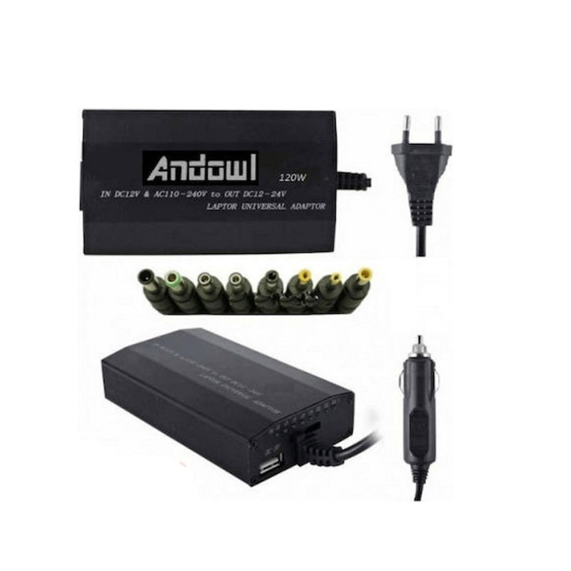 Andowl Universal Φορτιστής Laptop 120W 24V με Αποσπώμενο Καλώδιο Τροφοδοσίας και με σετ βυσμάτων Q-A23 – Power Adaptor 075926