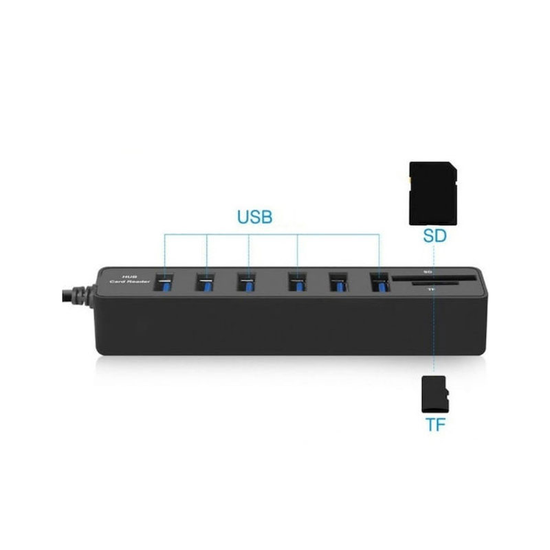 Υψηλής ταχύτητας HUB με 6 θύρες εξόδου USB 3.0 και θύρες για κάρτες TF και SD.