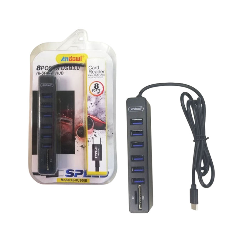 Andowl USB 3.0 Hub 8 Θυρών με σύνδεση USB-C Q-HU300B – Card Reader 075962