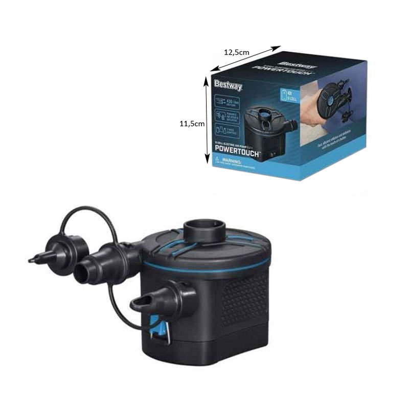 Ηλεκτρική τρόμπα BESTWAY με 4 μπαταρίες LR20/D και διπλή λειτουργία για εύκολο φούσκωμα και ξέφουσκωμα.